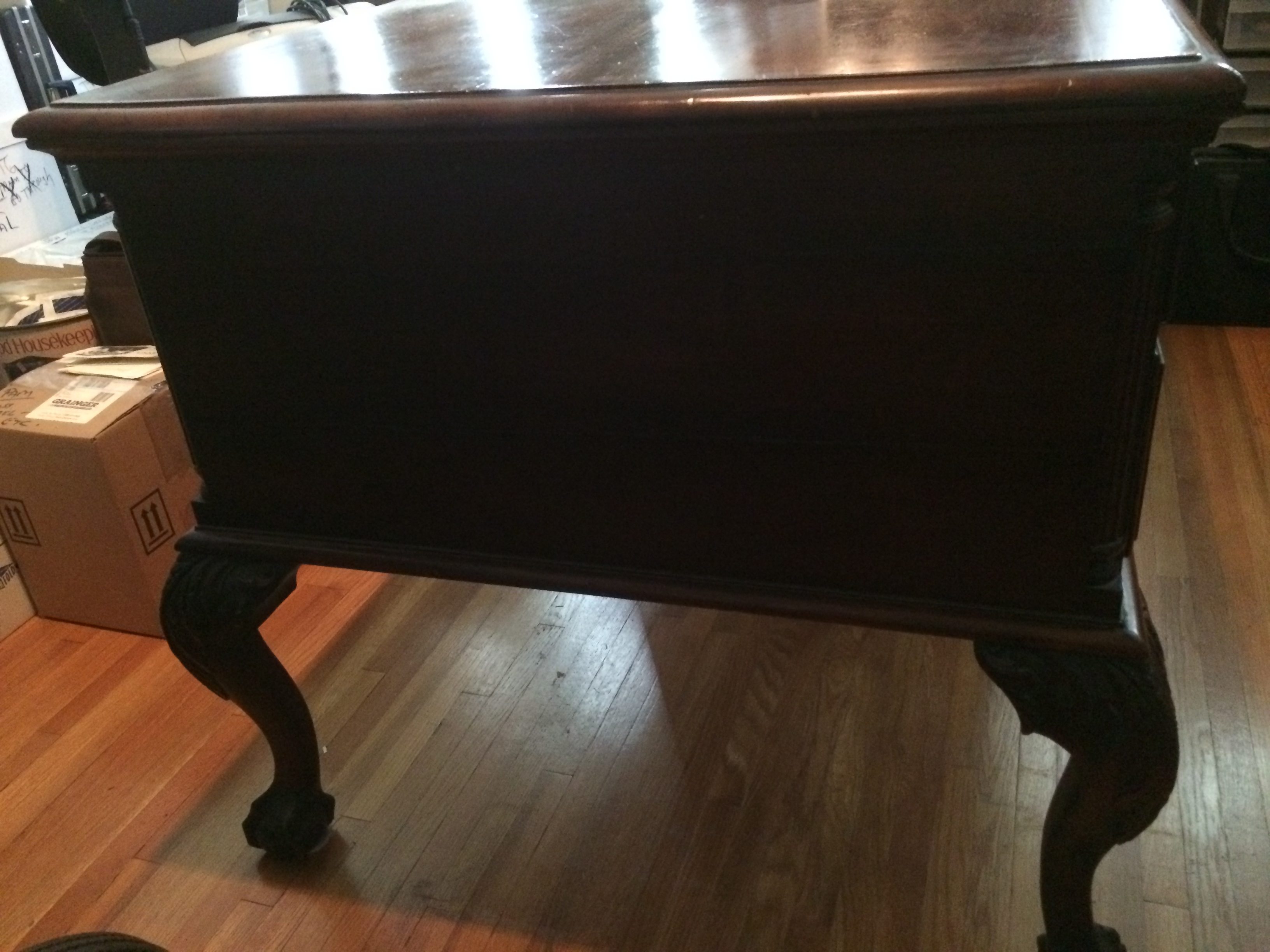 Mahogany wood; Not a Reproduction. 4 drawers on each side of the desk.