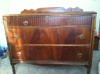 Description Pictures are available at: http://picasaweb.google.com/jbeardsley/Dresser Pic 1: Front view Pic 2: Back view (turned 90 deg) showing manufacturer's stamp Pic 3: Drawer detail Pic 4: Mirror Pic 5: Mirror detail This dresser has been used for many years in my family (at least 3 generations), been moved several times, so it has the expected wear & tear that goes with that. It's not a "fine" or fancy piece to begin with, so the bumps and bruises give it a rather authentic stressed patina that goes with the type of piece it is in the first place. The drawers all work as expected, though with this old piece it's just wood on wood (no fancy slides, etc). Has that nice "old furniture" smell to it too. The hardware is definitely not original, as holes on inside of drawer don't line up with screws on pulls. Looks like it had different pulls at one time and the external holes were filled as part of a refinish somewhere along the line. Made of wide-grained hardwood for sure, but doesn't seem like oak. Maybe walnut?