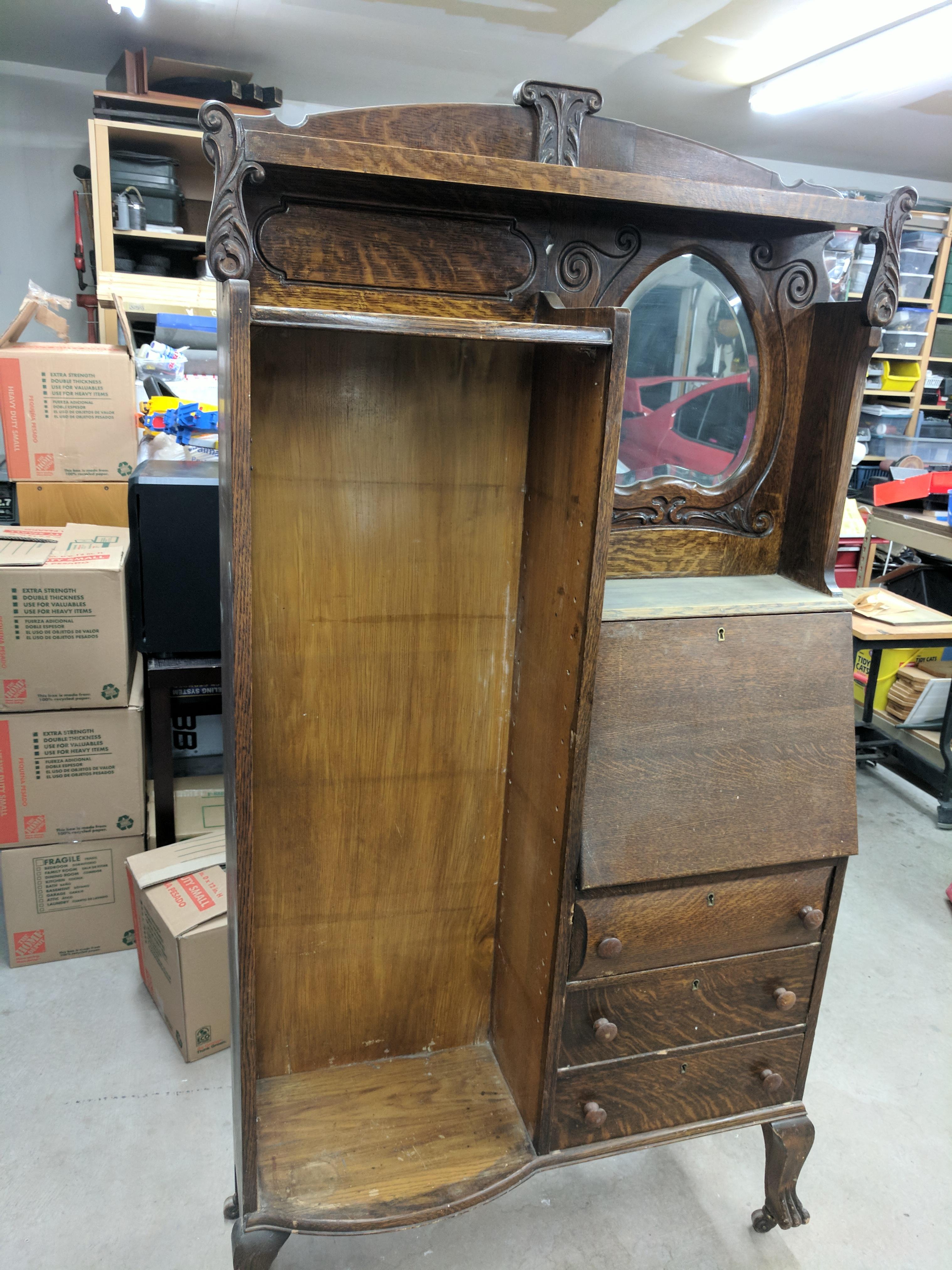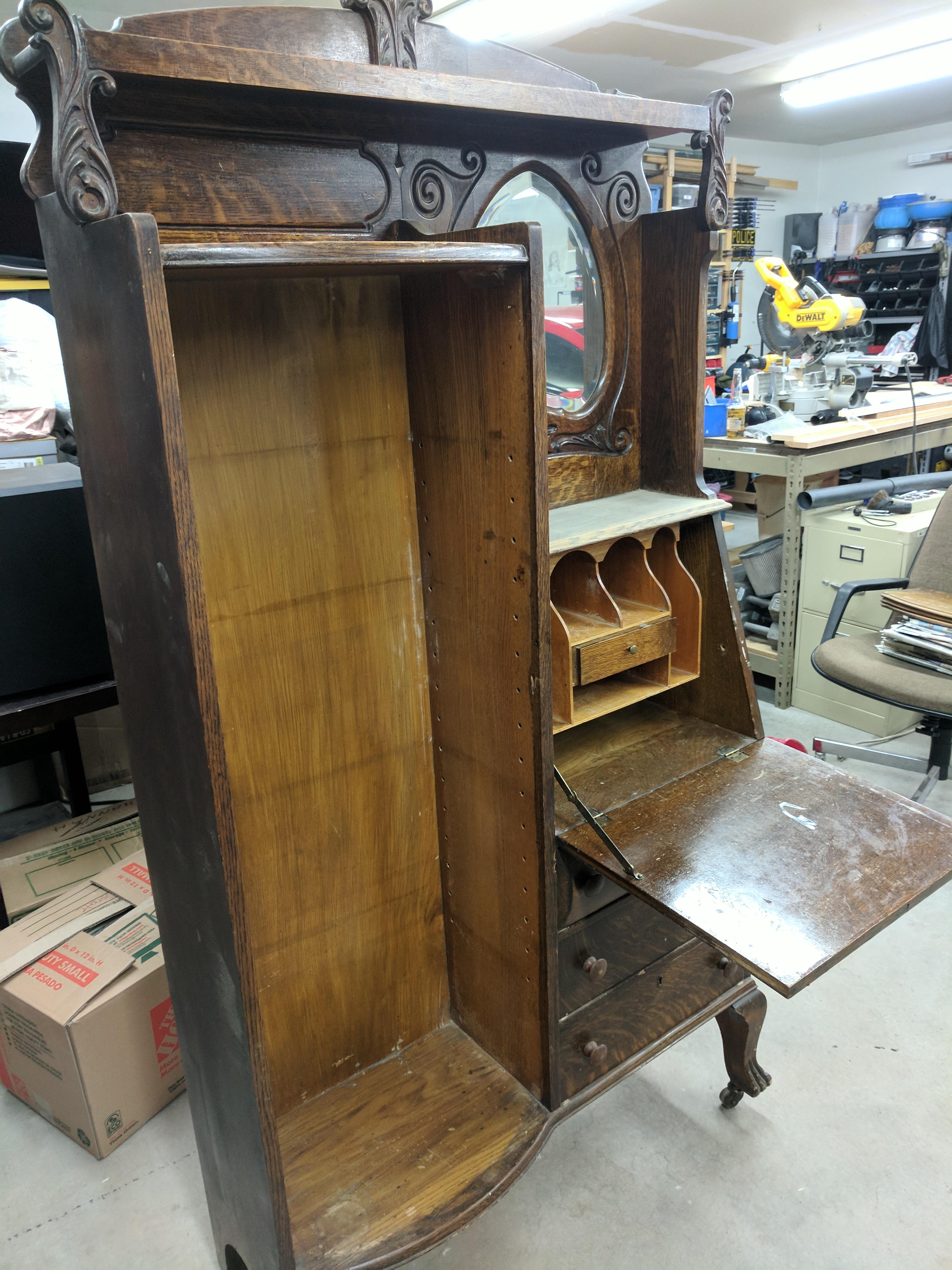 It's an Empire Revival piece, most of these date from the turn of the 19th Century. Piees like this were a hot item during the 1980's through early 1990's, but demand for them now is modest, pieces in need of restoration sell for about what you paid for it.