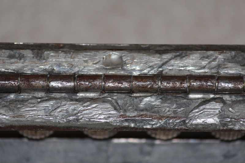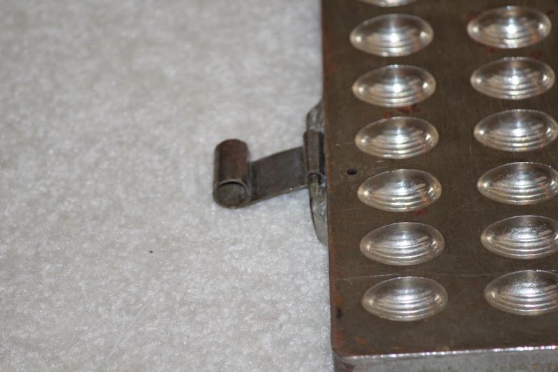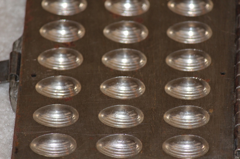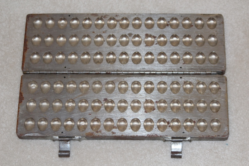 This is a very heavy. almost 8 pounds, mold. It is 15 1/4 inches long, 5 1/4 inches wide and 1 1/2 inch deep. It has 45 cells and closes with rounded metal clips. The cells have lines in them. I would appreciate knowing how old it is and its value.