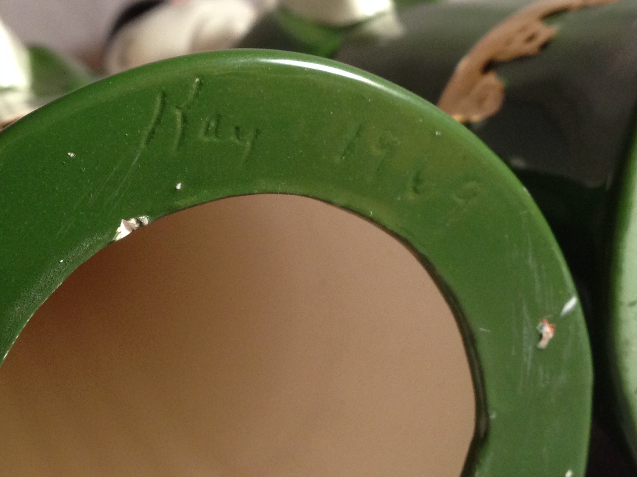 I need a Kay Finch Expert. Ok I found these two MINT boy and girl choir kids, signed on the bottom "Kay" and the date 1969. Now it is common knowledge that Kay Finch stopped making figurines in 1964, however this is a myth, and I found a book that is a biography and identification book on Kay Finch and her work, and it clearly states that she continued to produce pieces, but on a much smaller scale. Some pieces were one of a kind or very limmited pieces, 10 or less. I suspect this may be a piece created for a close friend or family member, and that is why she doesn't write her full name. In the book, it states that for one of her rare pieces that she gifted, she marked the peice with only her first name, very similar to the way it looks on these pieces. The colors are brighter then she is known for, but in her later years, she became more detailed and created more lively colorful pieces. If this is one of her pieces, it isn't documented in the book, and I haven't found any record of the pieces. The book also shows different ways she wrote and signed her pieces, and this looks just like one of the rarer pieces she signed. If it's not her, who else could it be? They are both very unique looking for her peices, which I think merits them more valuable, and they are in Excellent/Mint condition, obviously well cared for and valued through the years. Thank you for your time. The book I am referencing is,