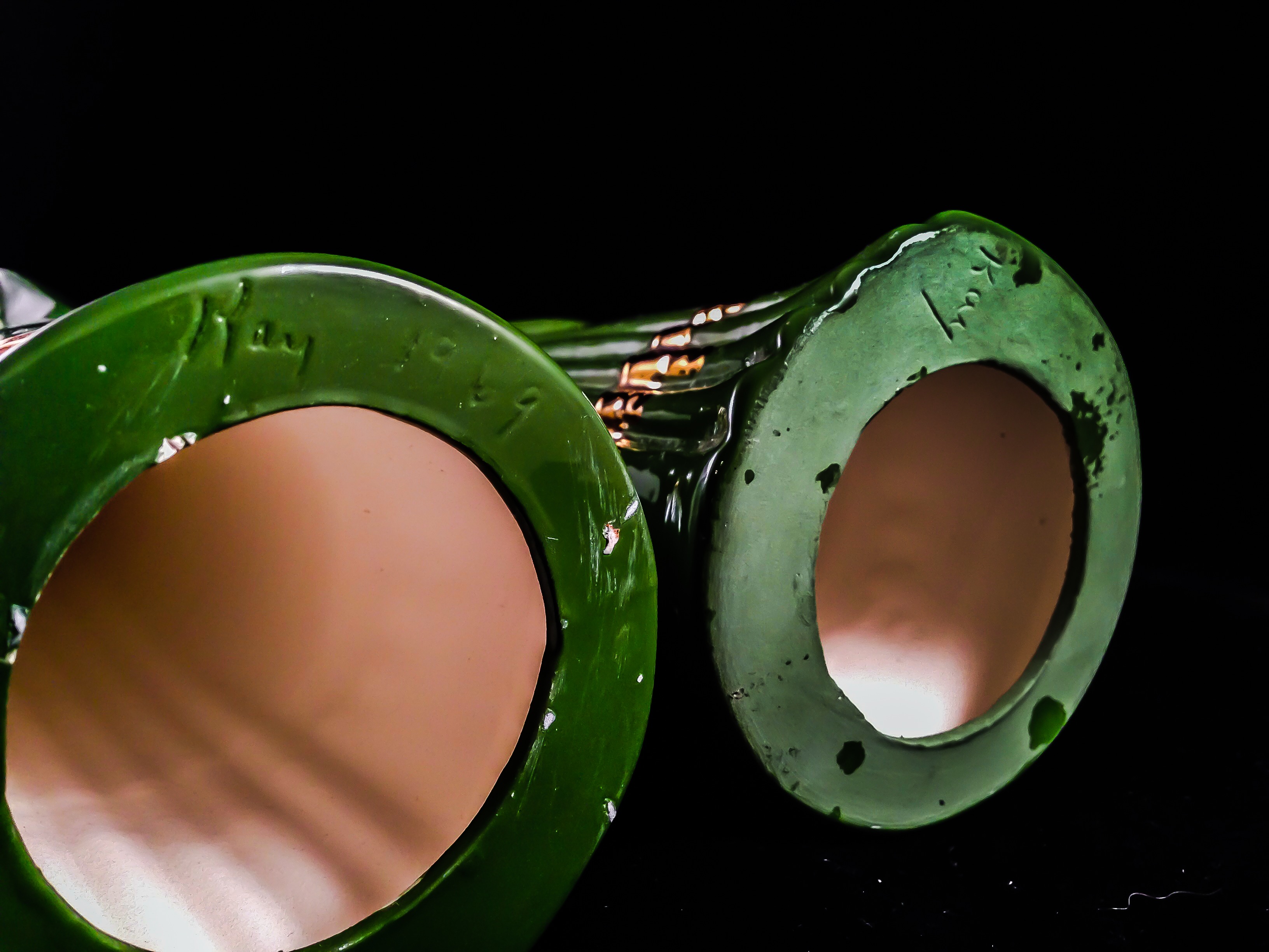I forgot to mention one more thing, I don't think these two were made as a matching pair either, the paint on the lips are diff. color the bottom of the pair is also diff. if they were painted as a pair the same paint color would have been used... they also would have been fired at the same time, they didn't paint the bottom of the male?