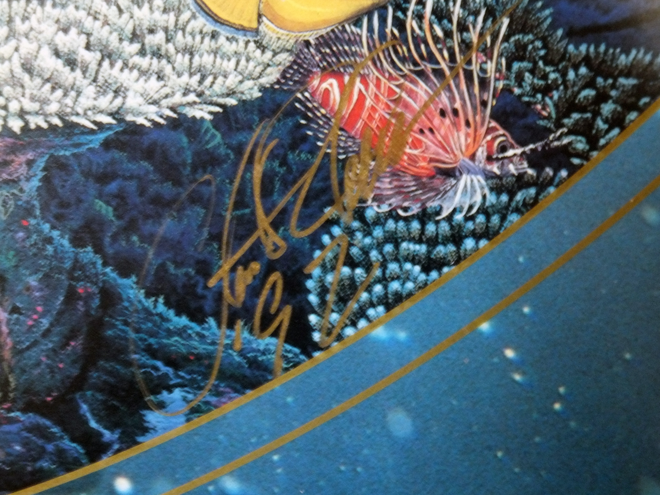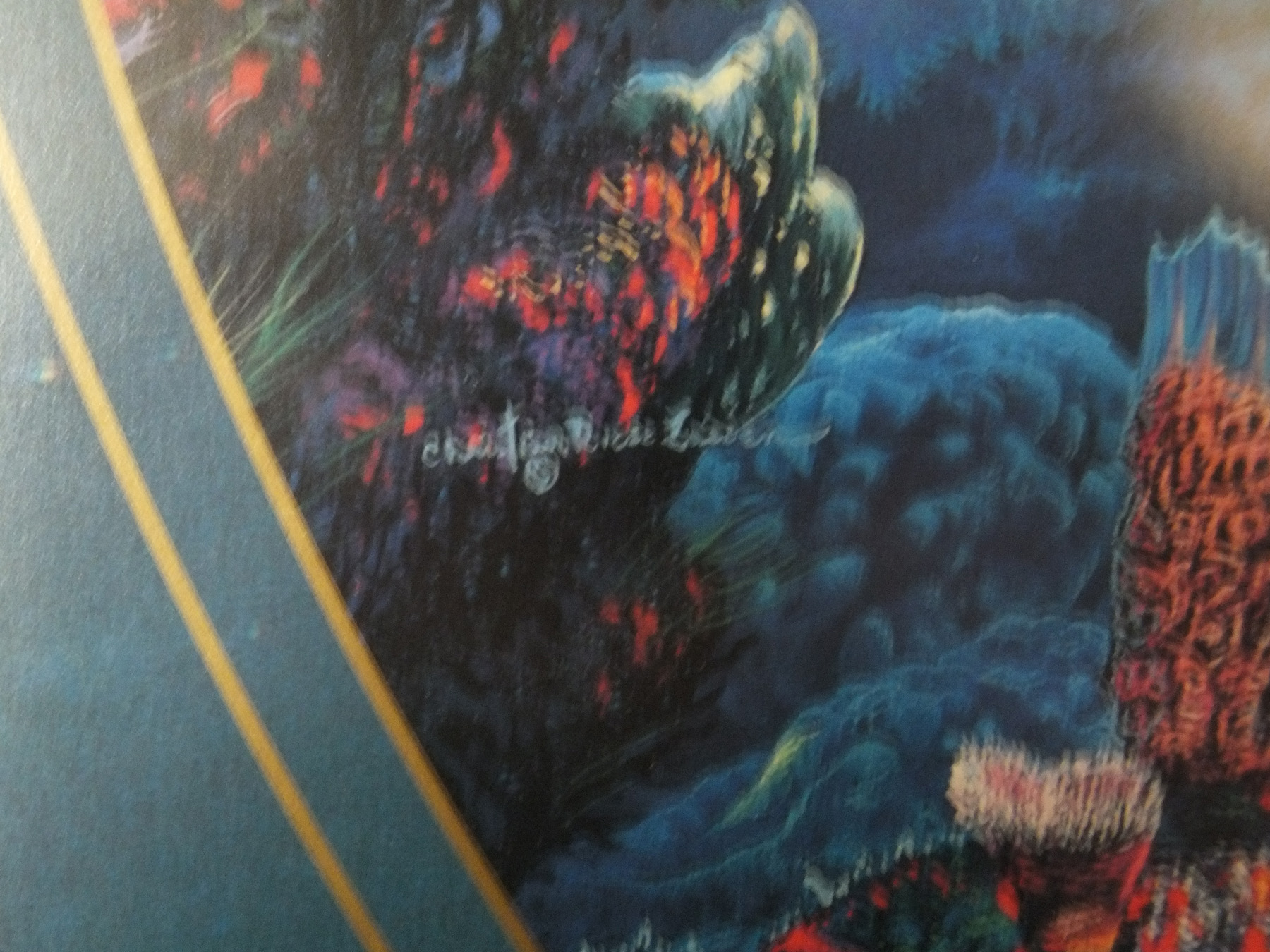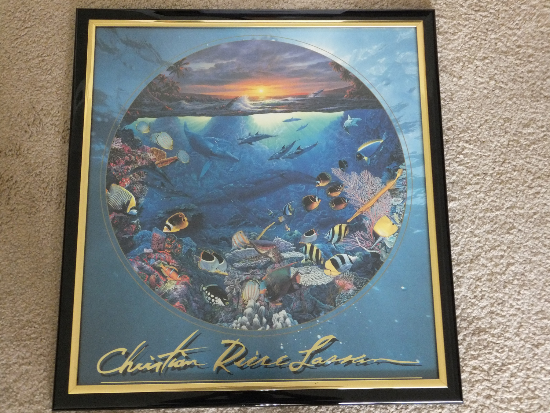 27x28 black/gold laquered Frame. Christian Riese Lassen Circle of Life. On the left side there is a signature that looks to be part of the print. On the right side there is another signature in Gold pen with '92. No certification, was framed in FT.Lauderdale,custom frames by Pearl. I don't see any other numbers. Can someone please tell more about this item,possibly including value as well. Thanks