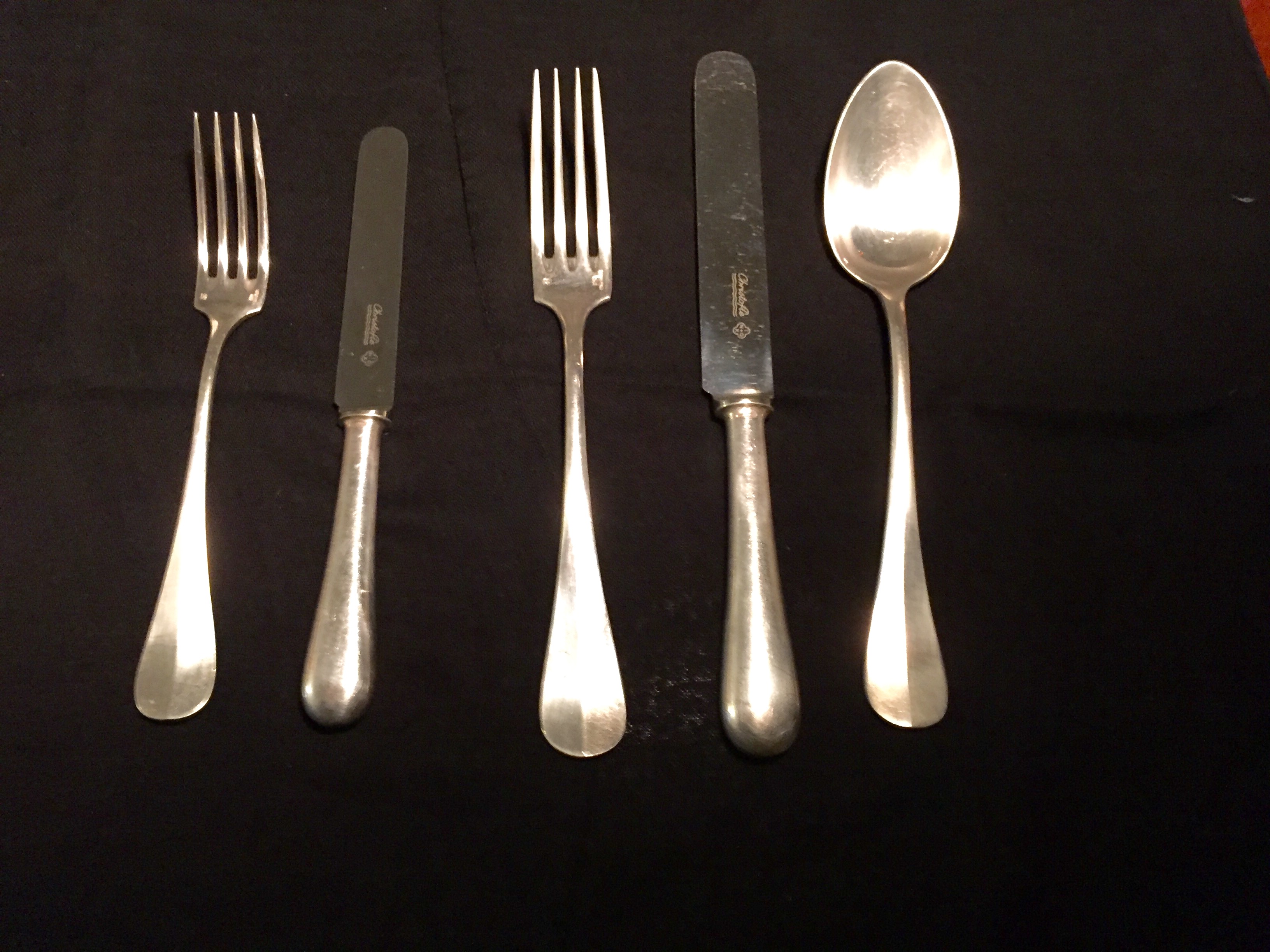 I own 610 pieces Christofle of France silver plated cutlery, Baguette pattern , which is a pattern used by Christofle between 1935 and 1983. The items I own were manufactured in the late 70's early 80's as I was informed by the last owner.