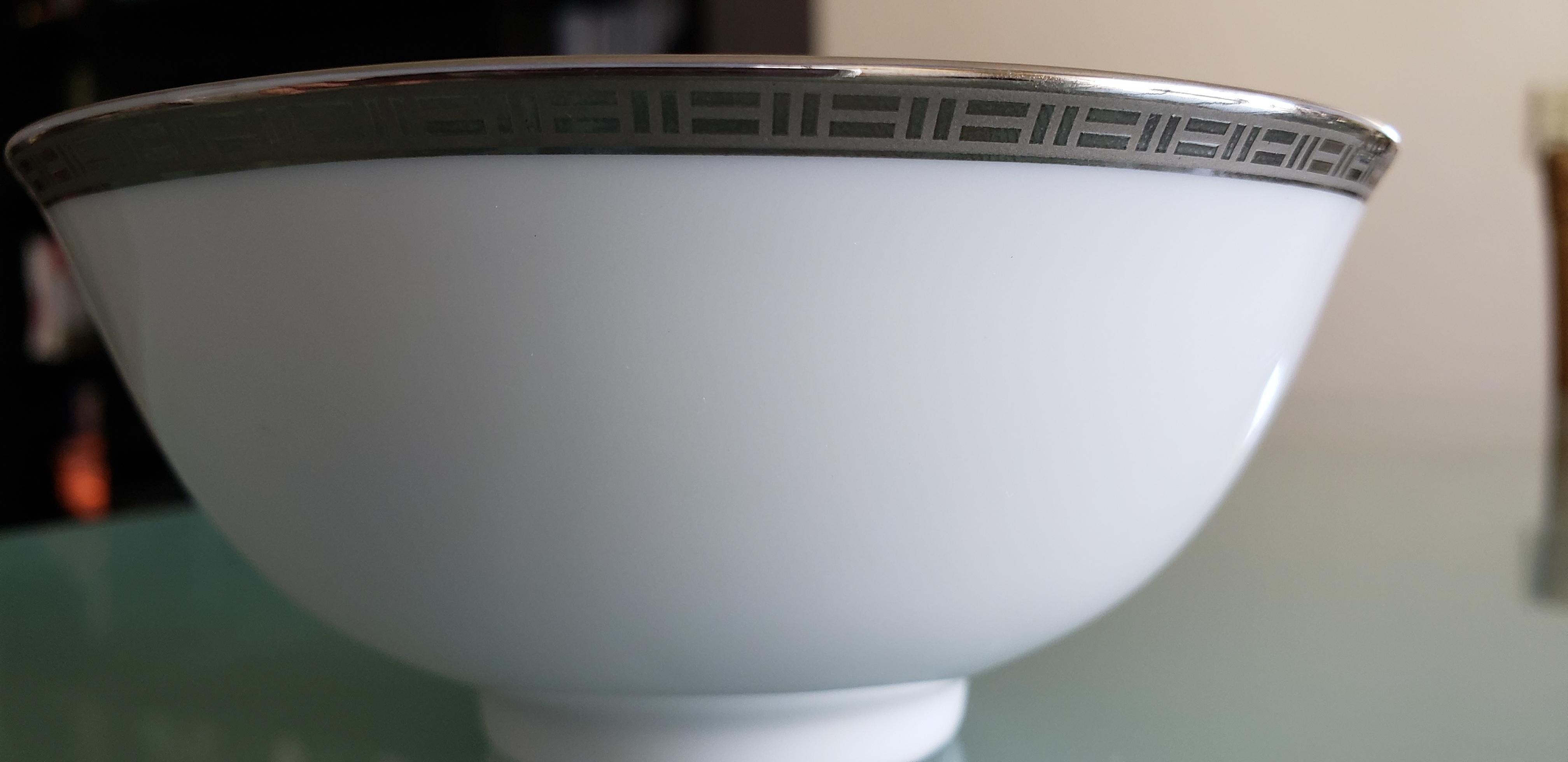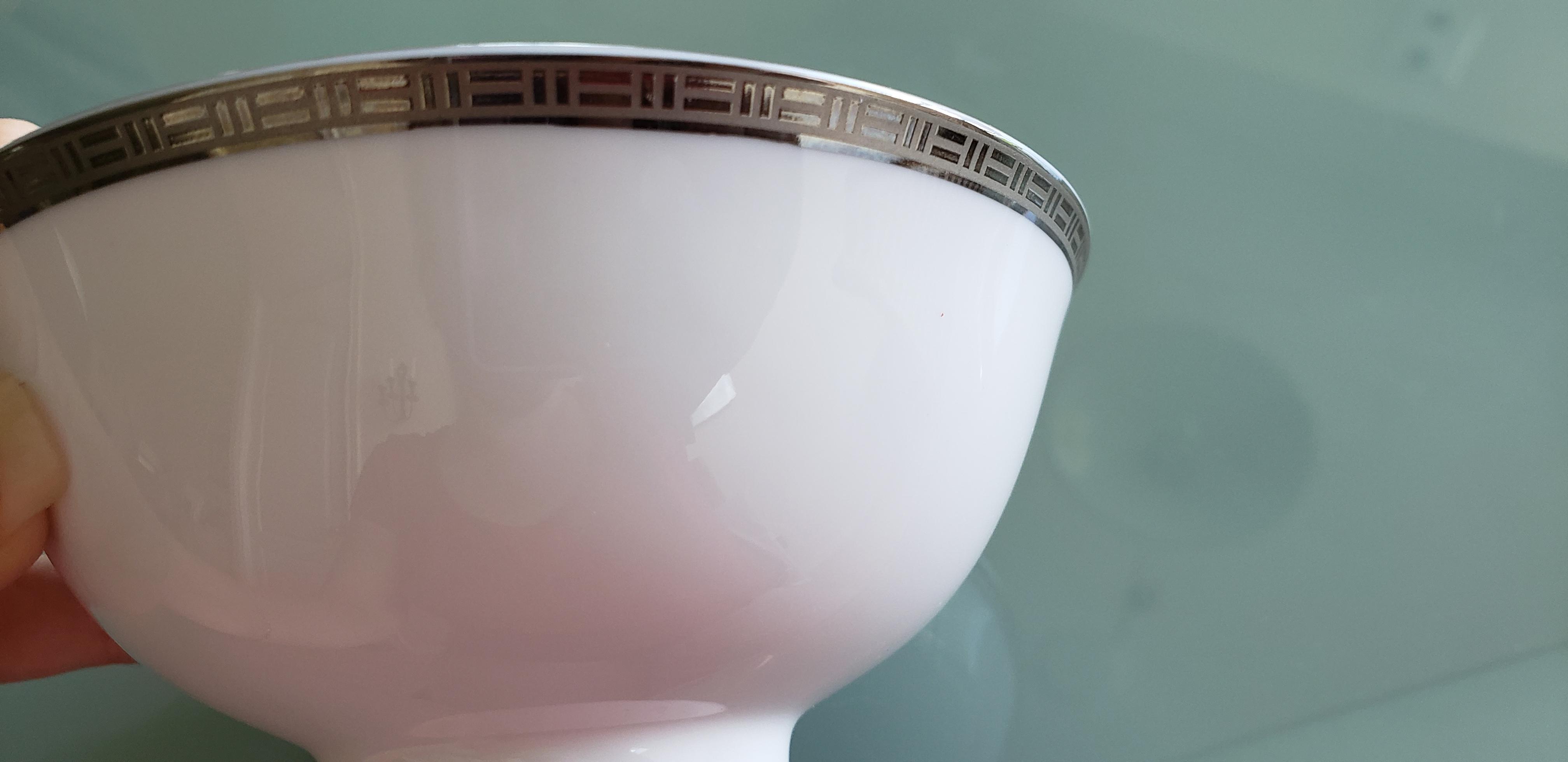 Christofle Metropolis, France - small white bowl with silver pattern outside of rim