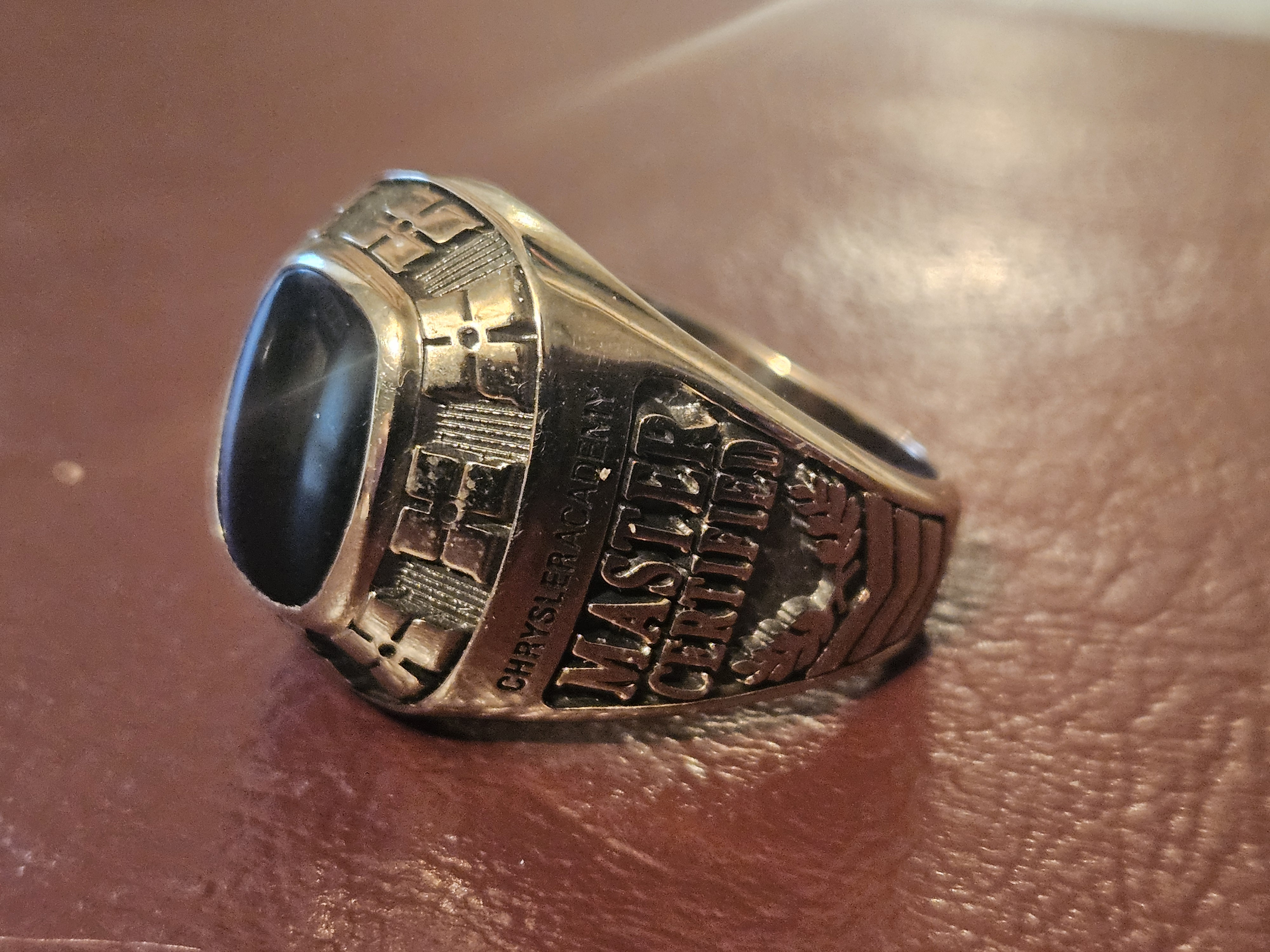 This ring would have been awarded to high-achieving sales professionals at Chrysler dealerships who reached “Master Certified” status—part of the Daimler Chrysler Academy’s elite training and recognition program. These rings were: