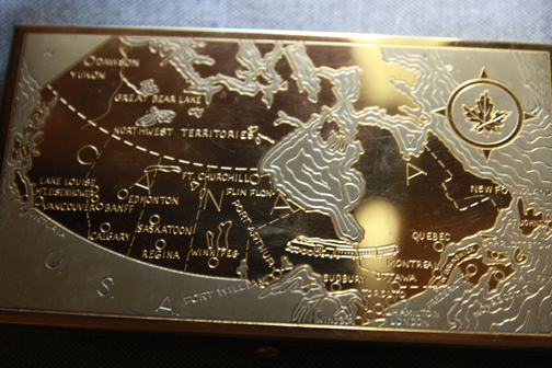 I have received a cigarette holder which is 18k gold plated. It is engraved with the Canadian map on the front, however map is outdated.