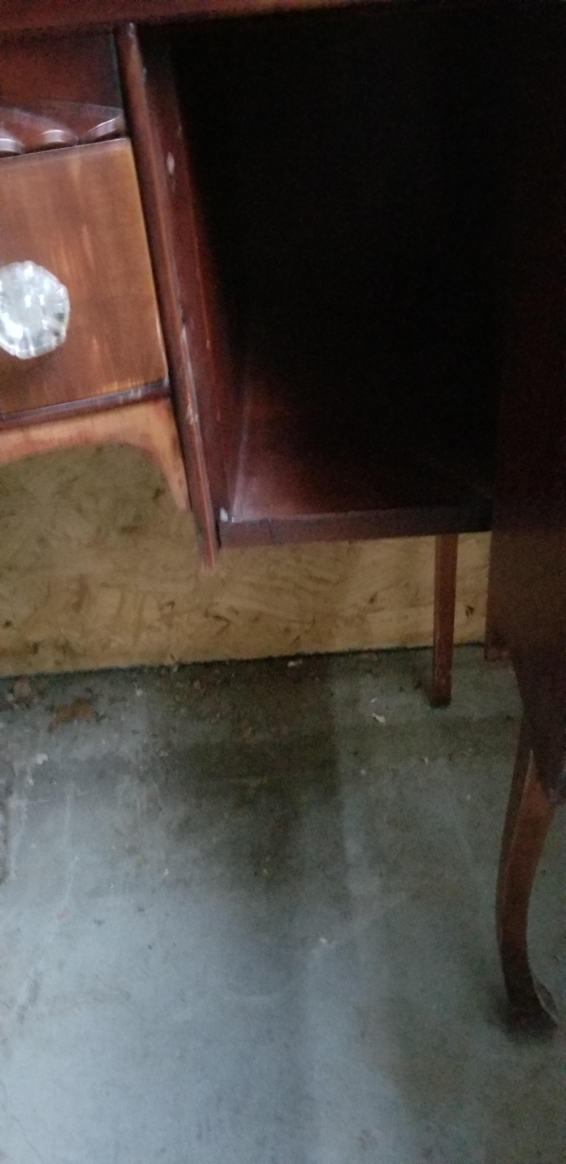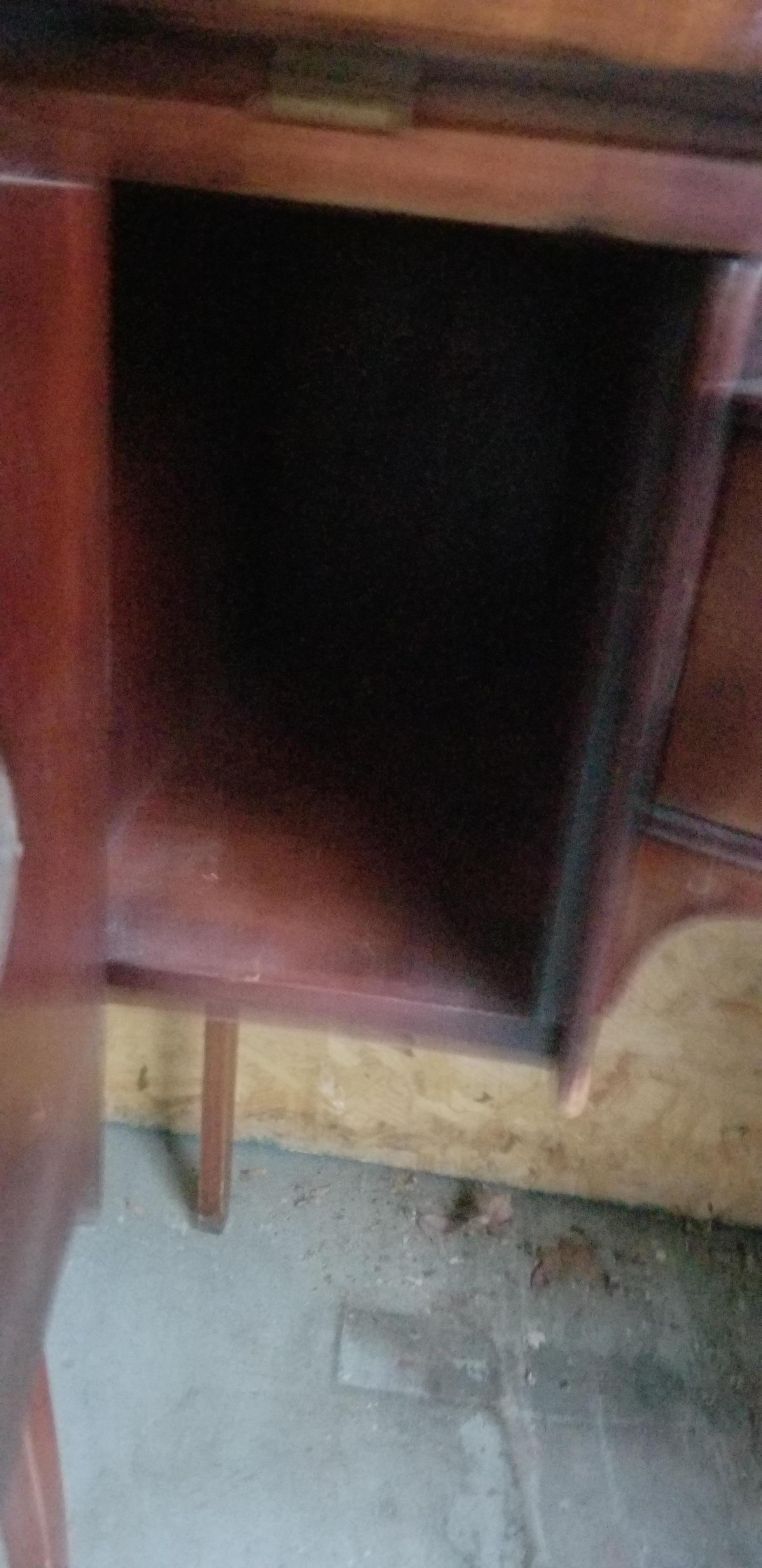 Outside drawer in middle with working lock. Storage on both sides, doors have working locks. All locks are brass and keyed to same key. As far as I know they are original. Was brought to America around 1830 from Scotland. Father was told in the 1940s by his grandmother that it has been in the family for over 300 years.
