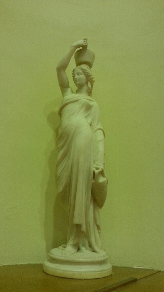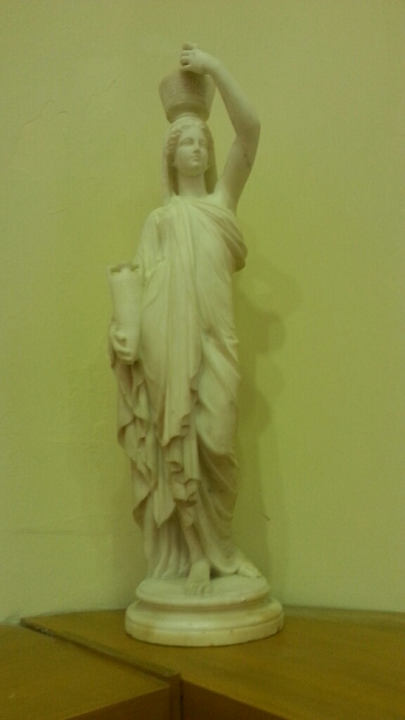 pair of alabaster statues 36"tall, base circumference is 30"