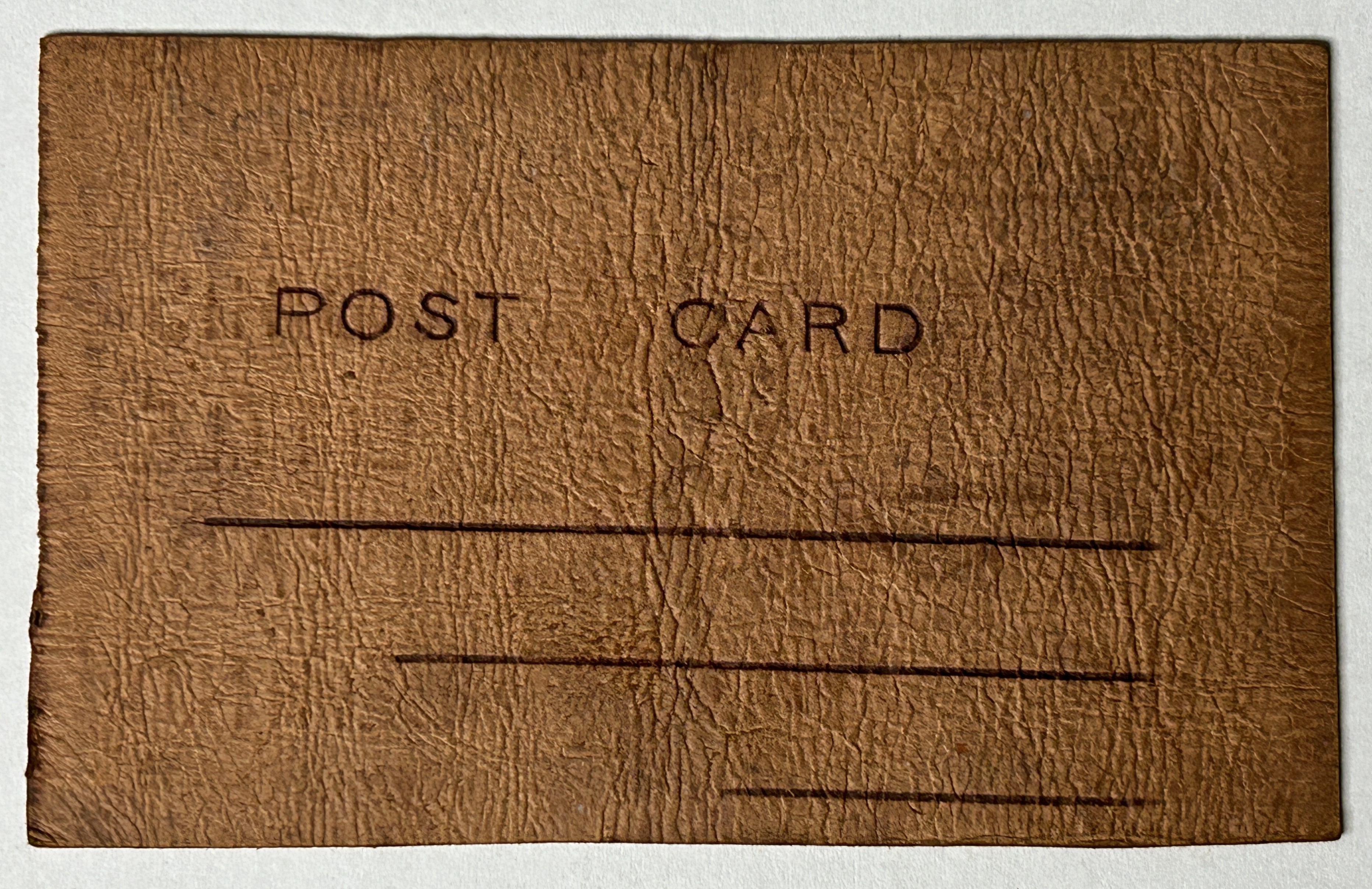 Unused leather postcard, discovered with another leather postcard, mailed in 1907.