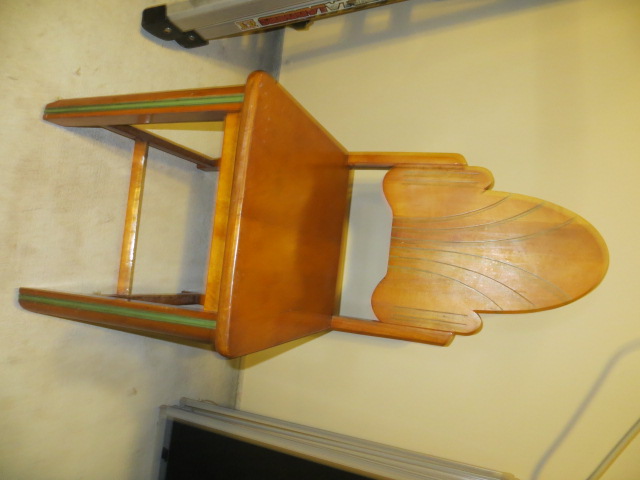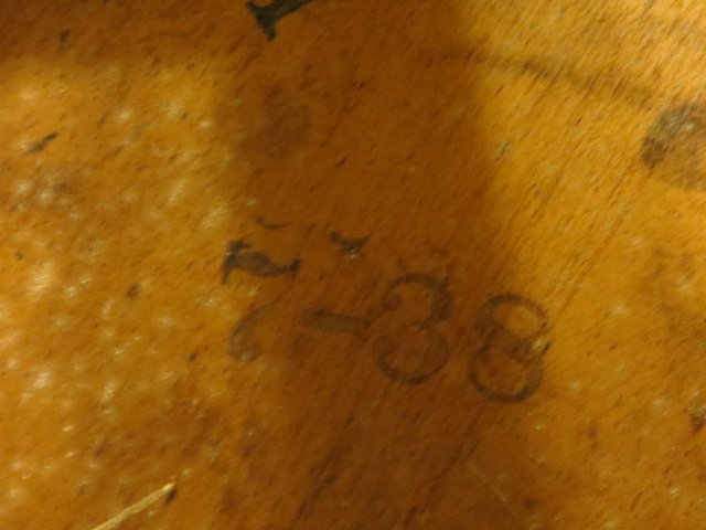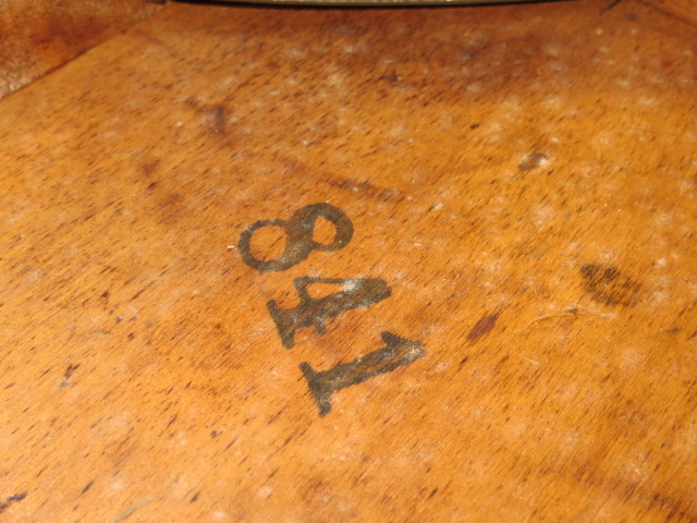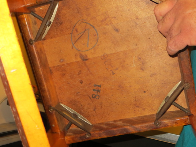 Distinguishing marks 7-38 and 841 stamped on the bottom. Very distinct green trim on the chair.