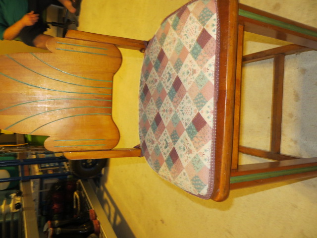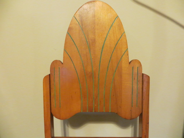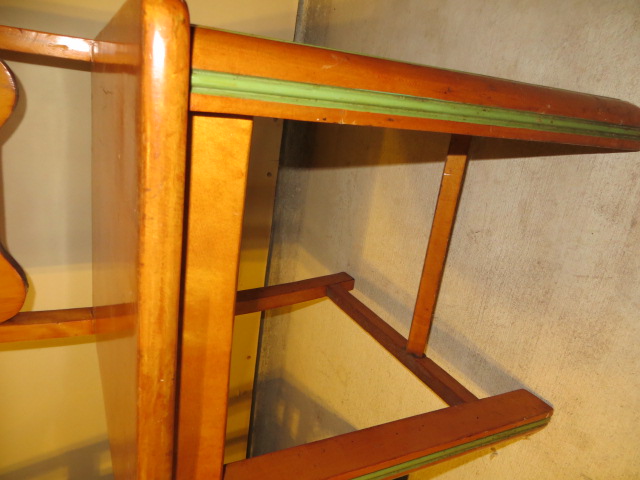 Medium Set of four wooden chairs with green trim. Believed to be ~1938 vintage