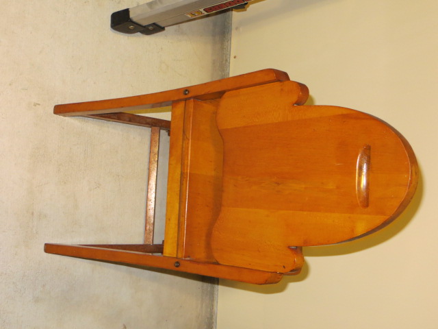 Set of 4 wooden chairs.  Believed to be part of a late 1930's kitchen set.  Appear to be solid wood with metal braces in the corners of the seat.  The #'s 841 and 7-38 appear under the seat but no manufacturer's information.