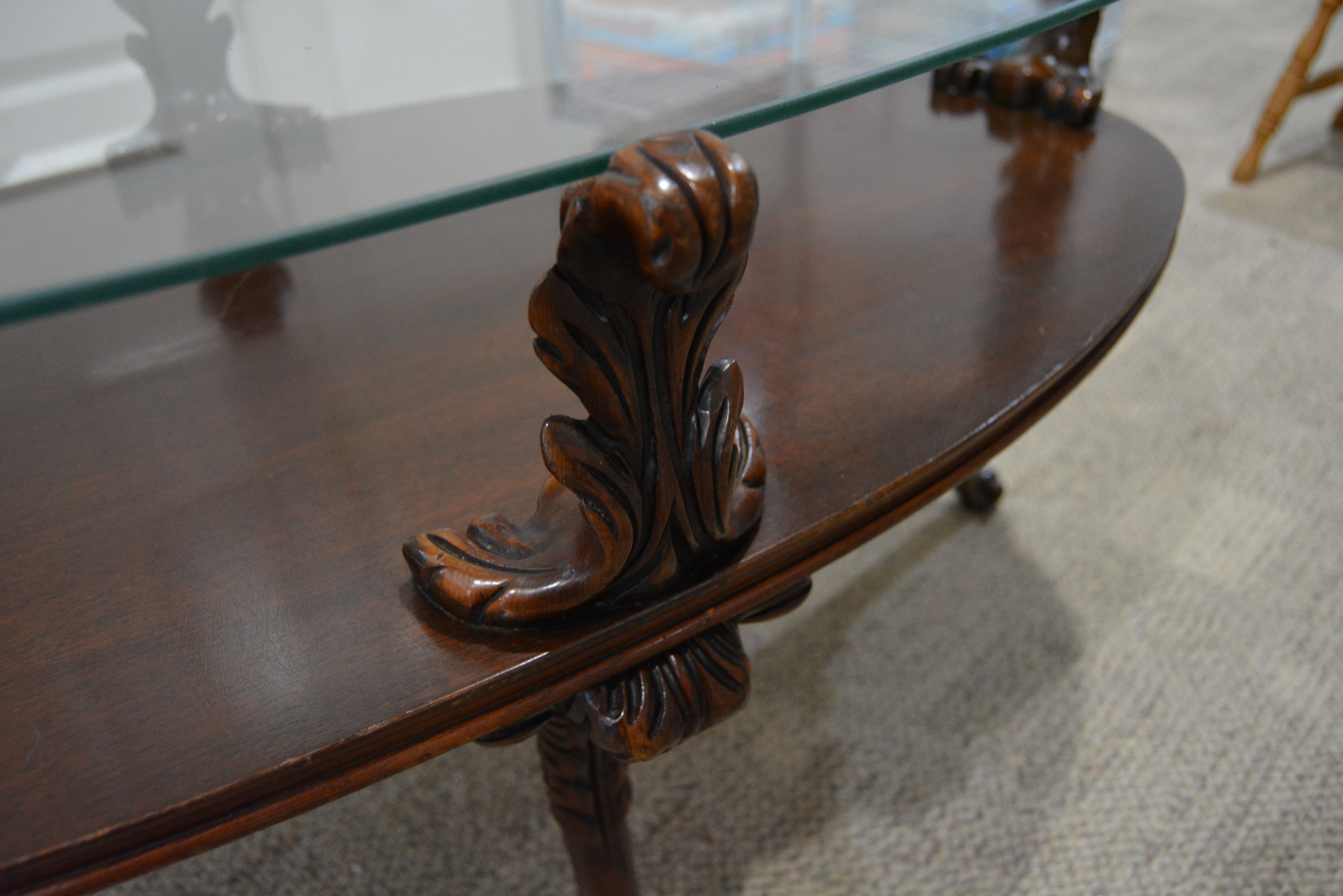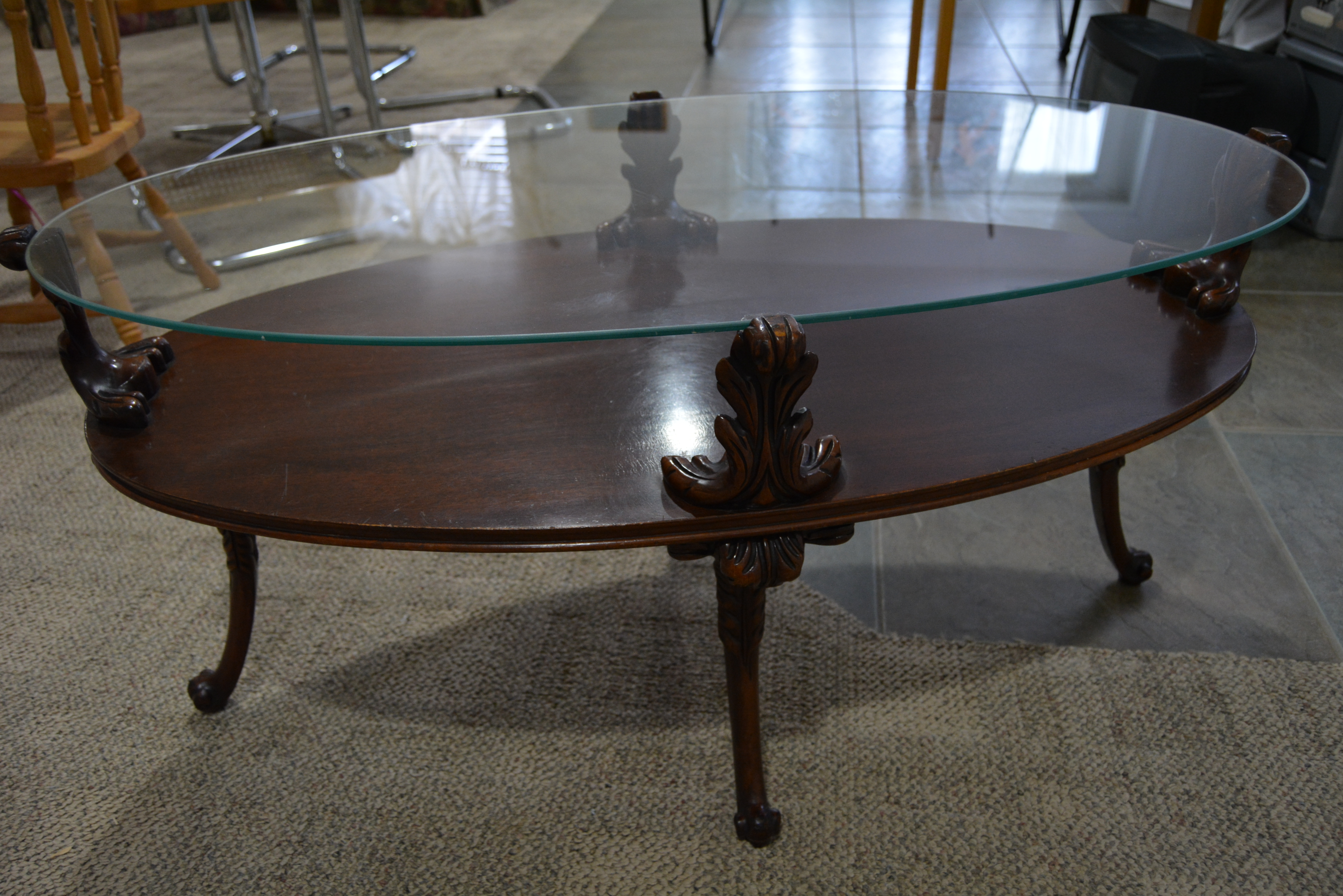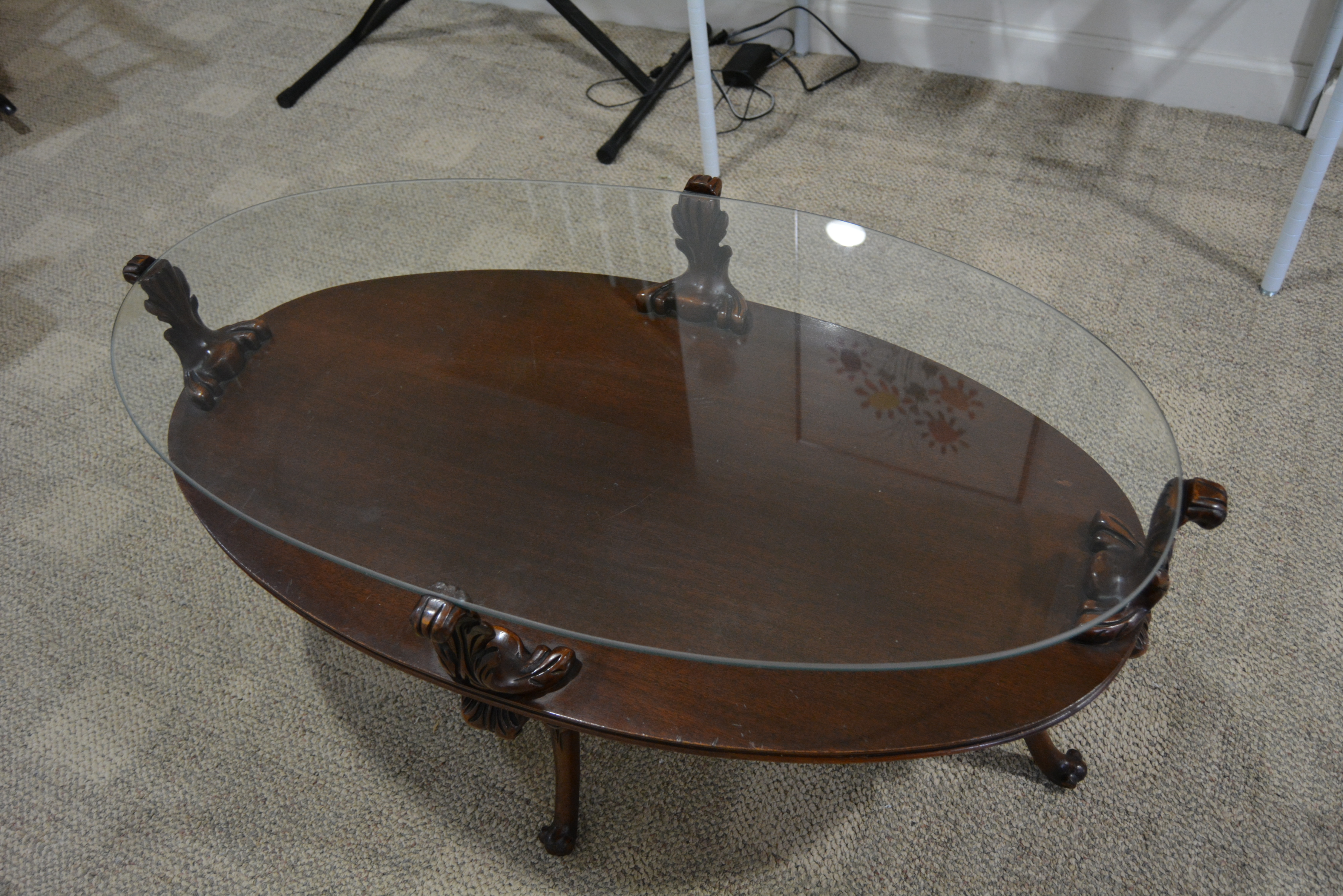 Re: Circa 1940 oval glass top coffee table