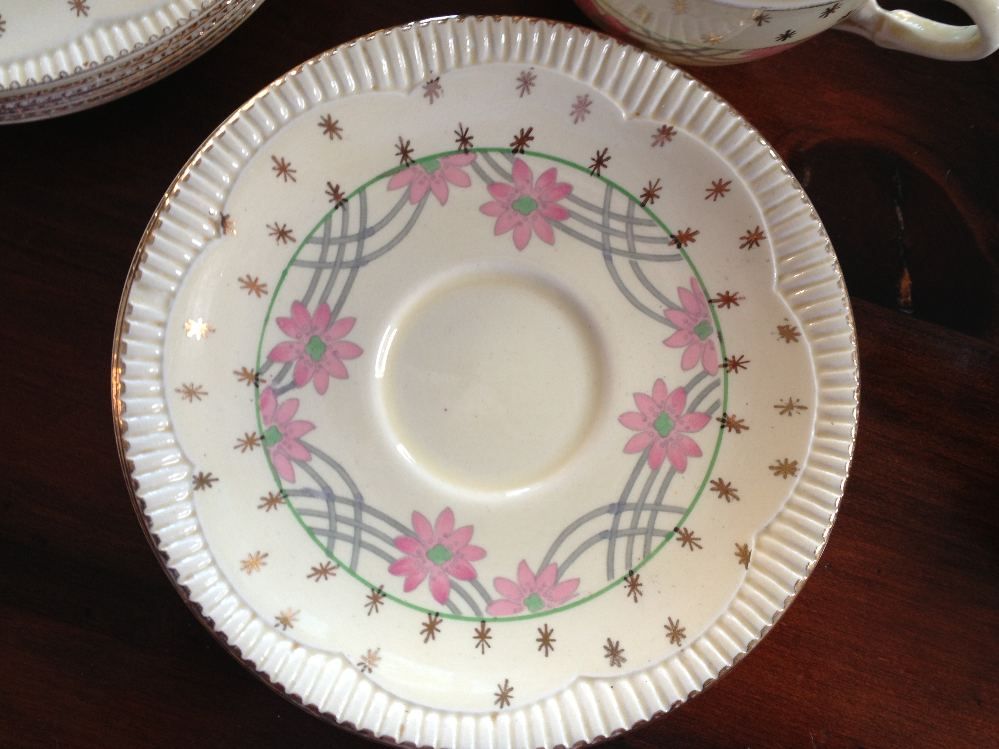 Distinguishing marks pink flower pattern with fluted edge