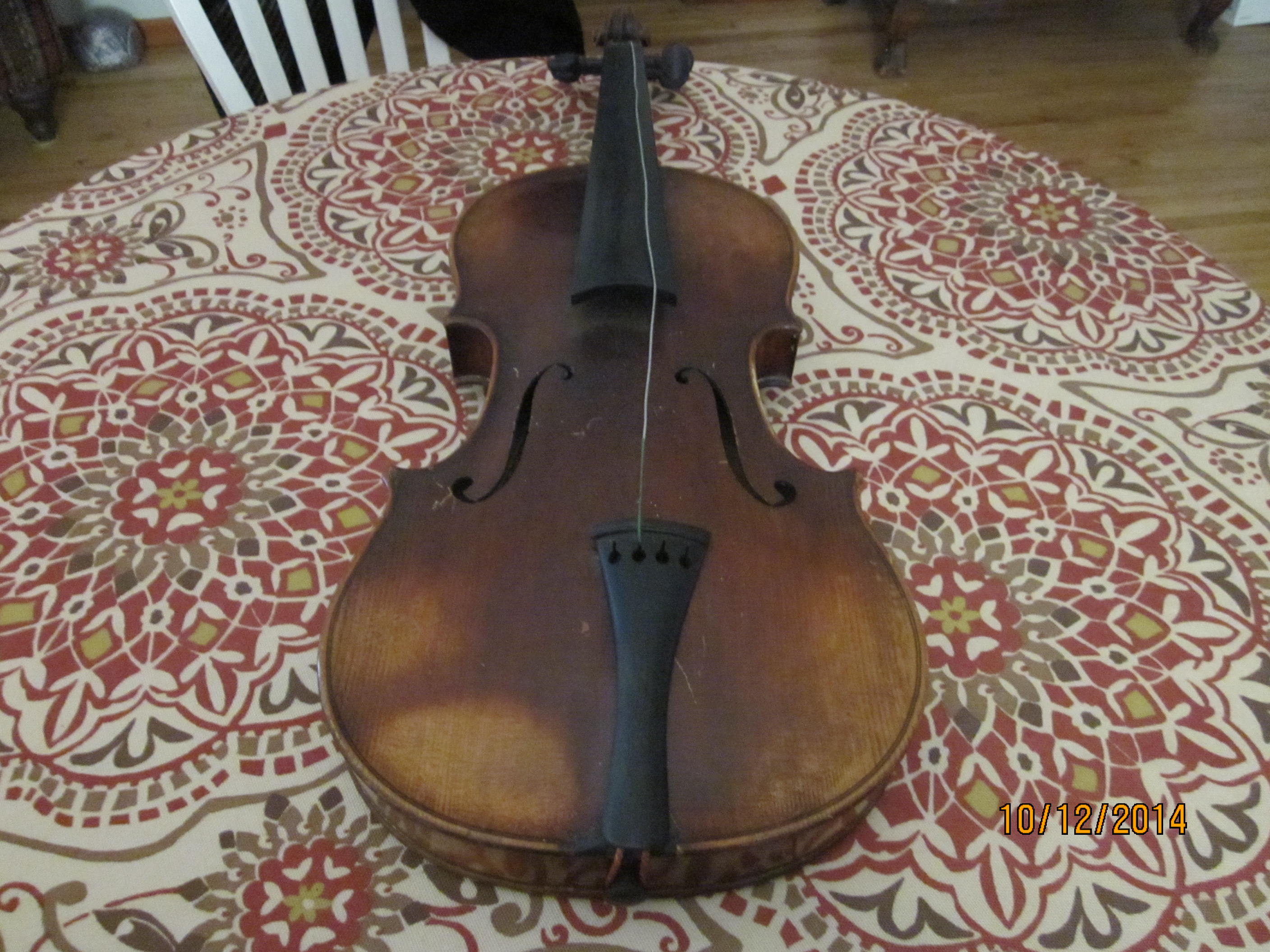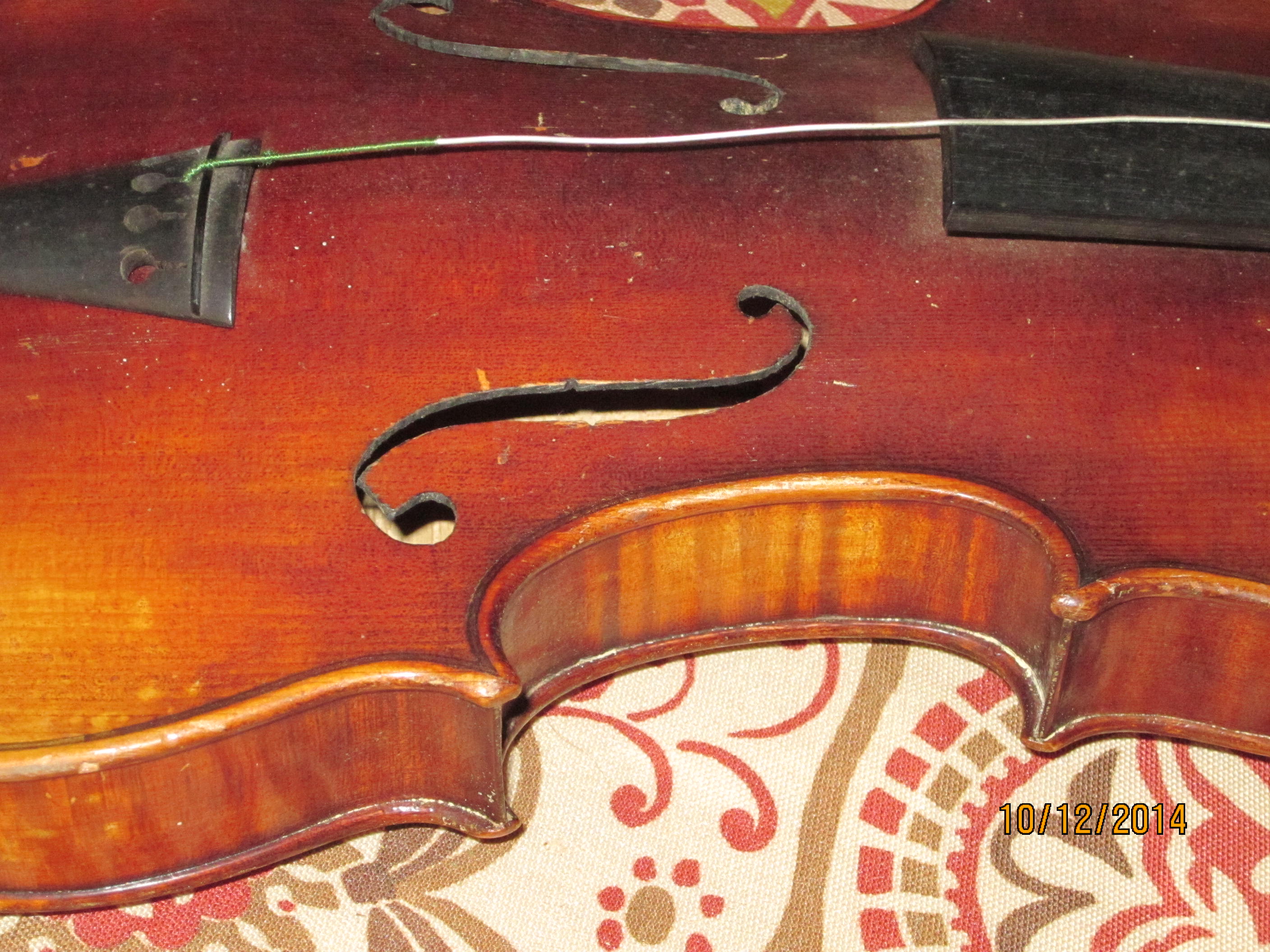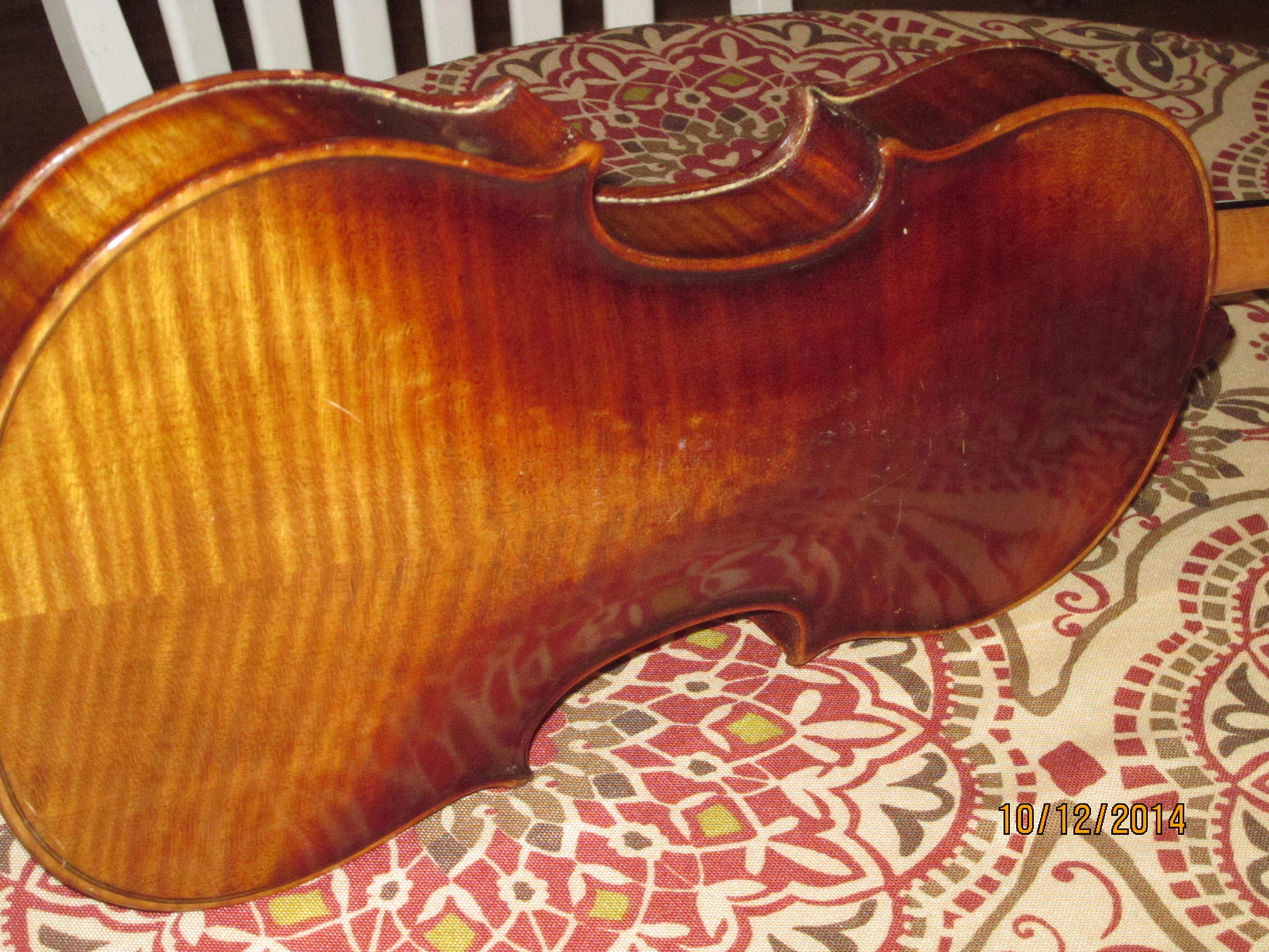 I purchased this Violin in a Estate sale and know very little about it. It does not have a bow, case and is missing the bridge, strings and has a few small scratches. I hope my pichures can allow you to capture enough. Looking in the slot I can read a lable that says: