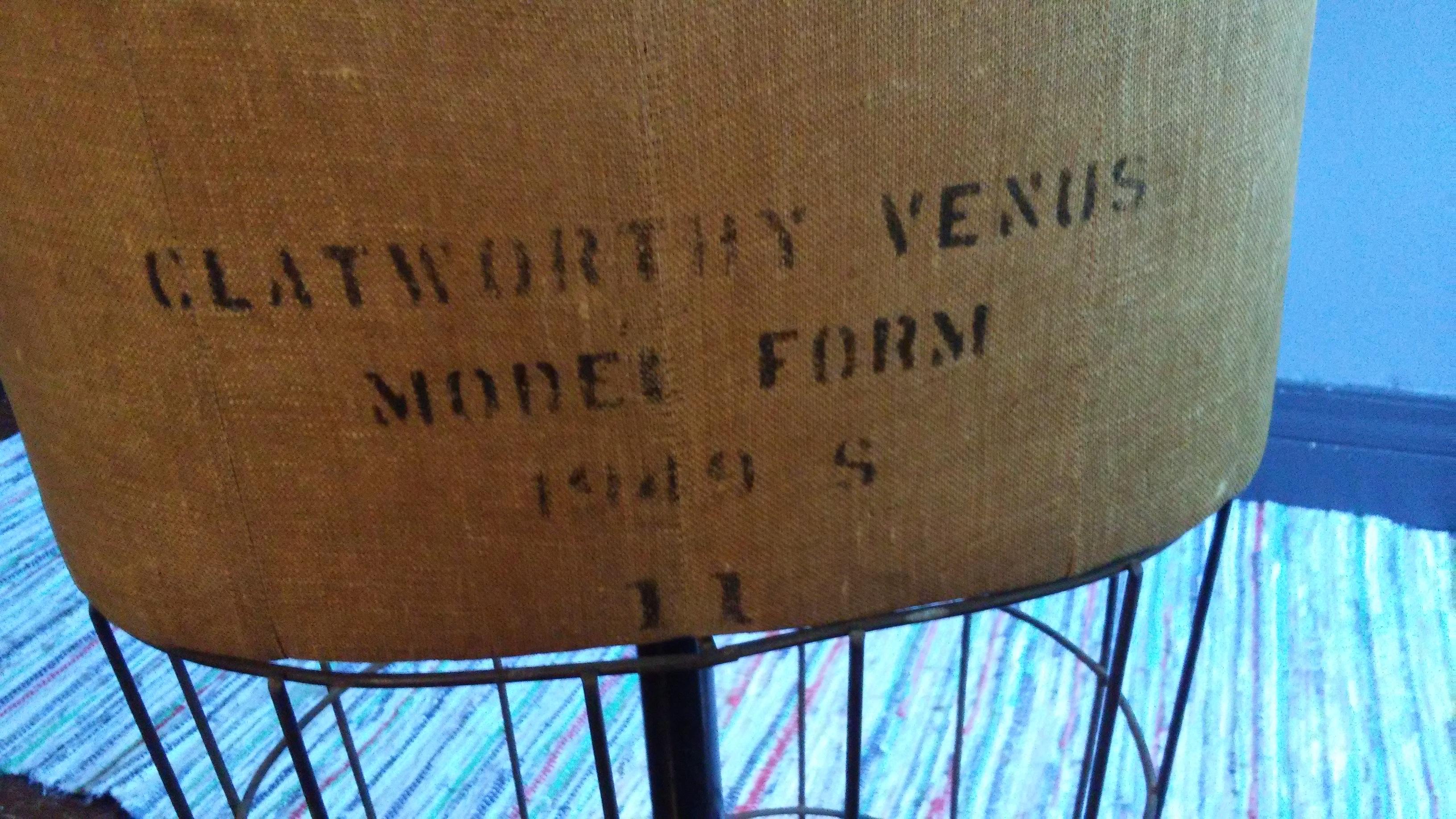 I have an antique dress form made by Clatworthy in Toronto, Canada. The model is "Venus" and the year on it is 1949. The shoulders are a little worn and there are small water stains on the back, which I have included in the photos.