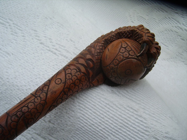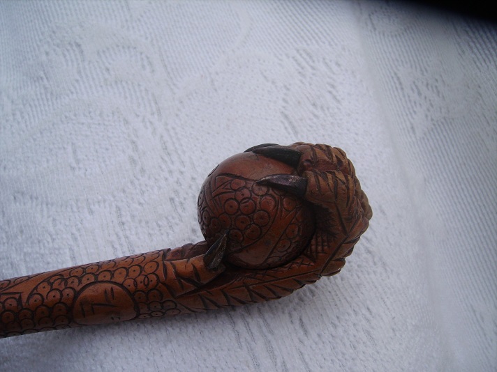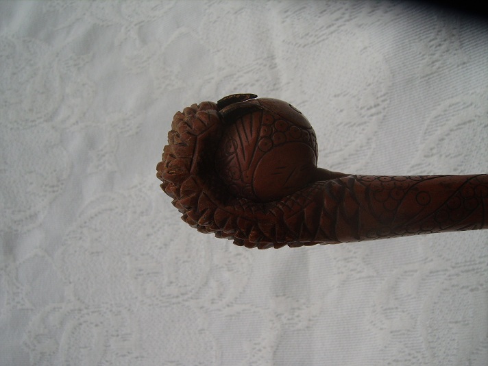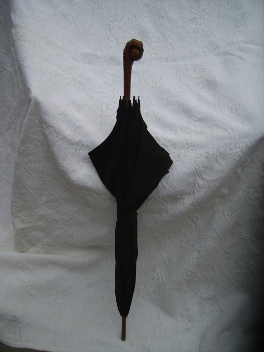 This umbrella has been in the family many, many years. With the fabric very fragile and worn I had a new top sewn. I had the original ( I assume) loop and button that holds the umbrella together. The button is stamped 'Hirsh & Bro'. I found that company, Hirsh & Bro Umbrella and Parasol, in PA. during the late 1800's to early 1900's but could not find the exact dates the co. was in business. The business it was housed in was called the Gibson building in philadelphia.
