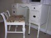 This bench appears to be made of Mahogany and was part of a vanity set. The bench has clawfeet and old style nails.
