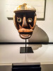 I have no information on this item. A homeless man gave it to me and it has truly given me the creeps since then, but my curiosity has led me to keep it. There is a label stuck to the back with words written in cursive which i can't make out but if i were to quess it says : los' easa mediona 700/00202. It deffinitly looks handmade and there is a small crack on the bottom. It looks tribal.