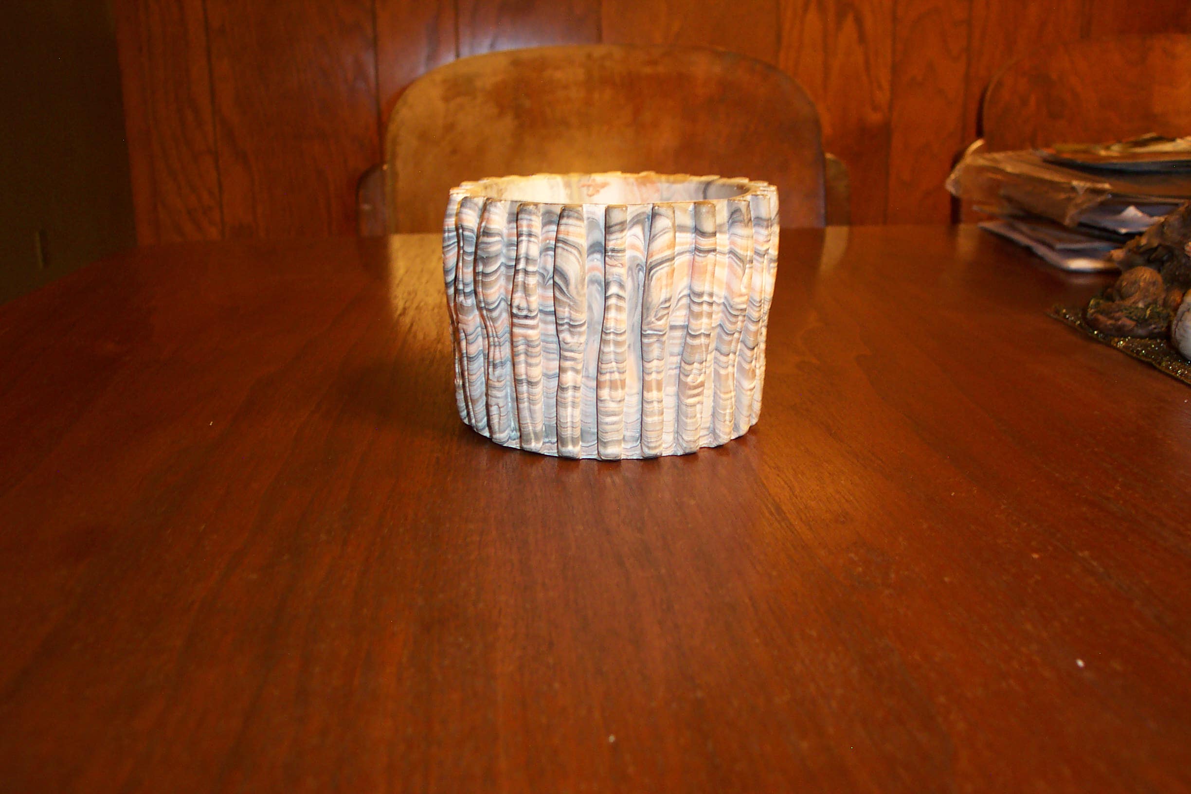 The item  has several different colors within it. Not sure where it was made. The antique dealer (who's section of the store this item was in with other pottery) was in the process of placing other European pottery on the shelf when I purchased this and several other items from that area of the store.