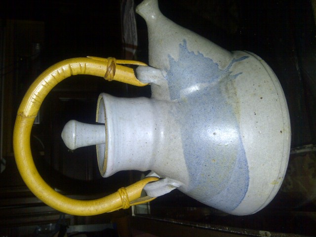I would like to get some info on this two toned clay tea pot with a bamboo handle. I purchased it about 4yrs ago and have no idea about its history. Does it have any value? Where is it from? Are you able to make out the marking at the bottom?