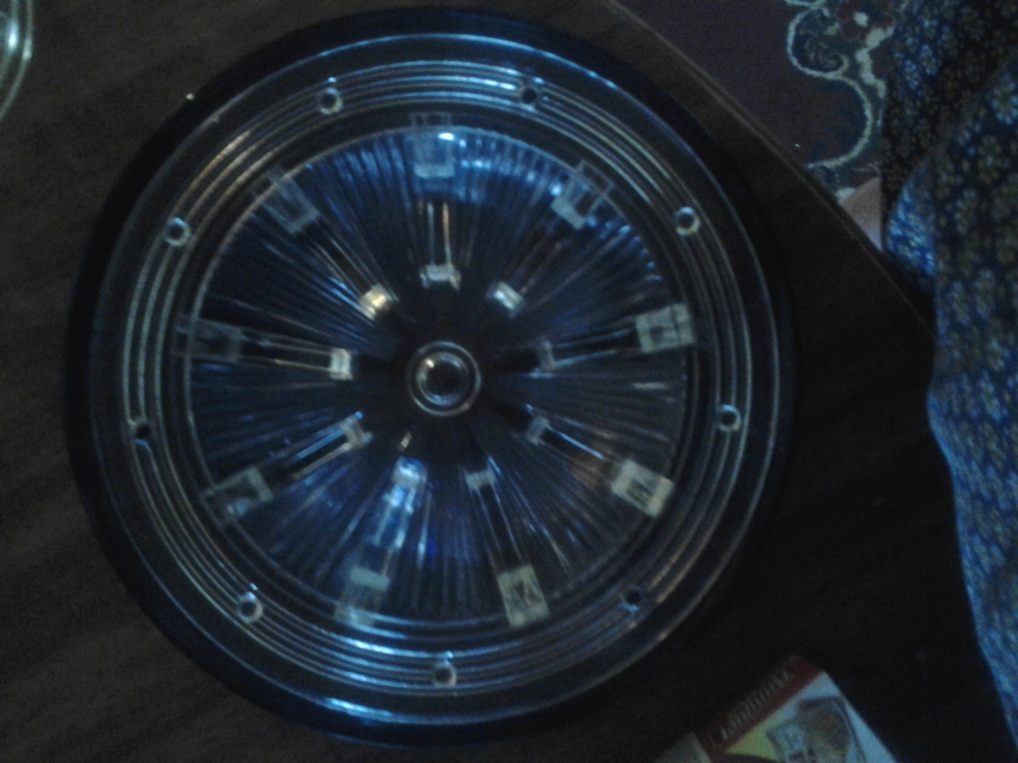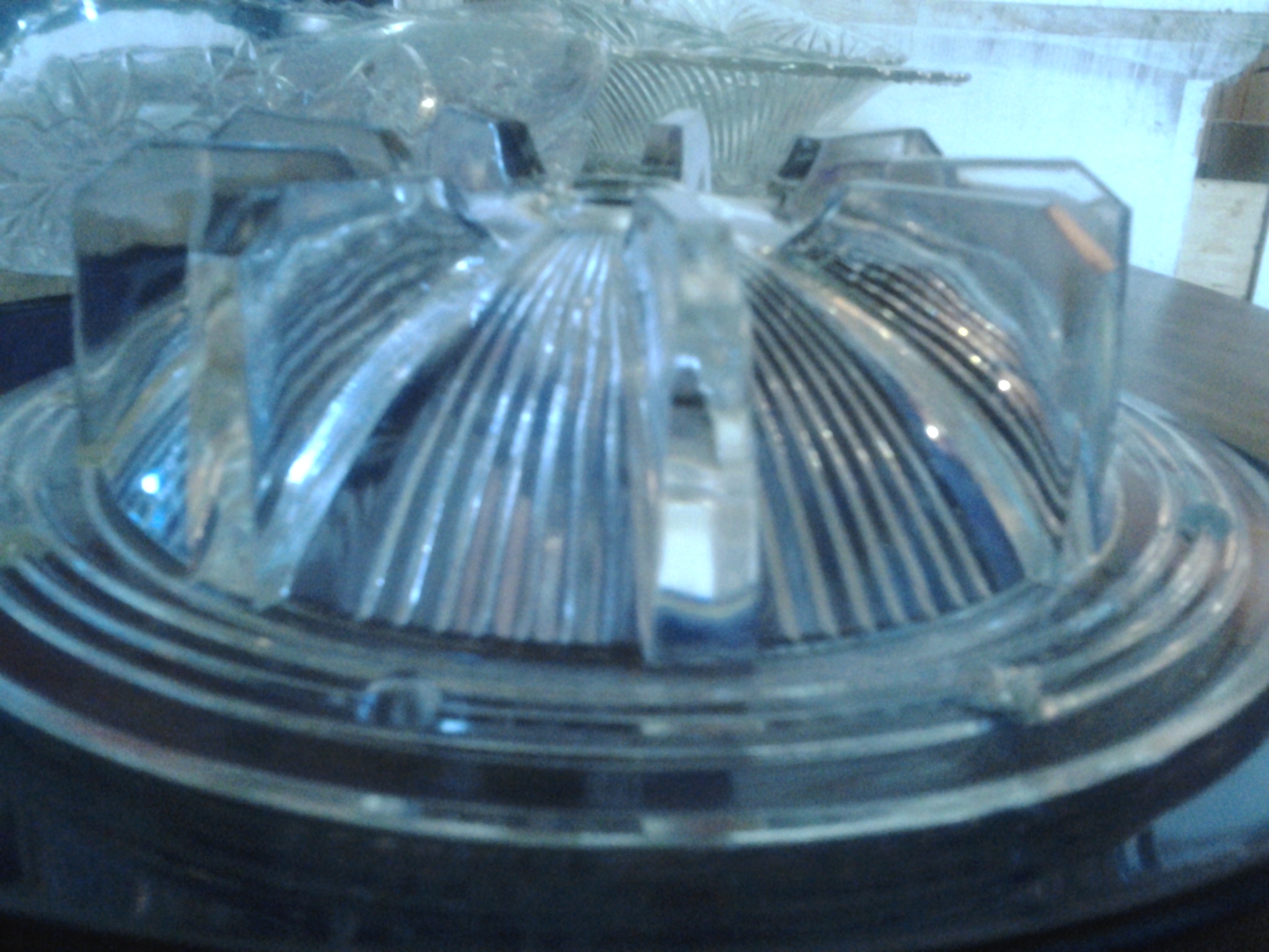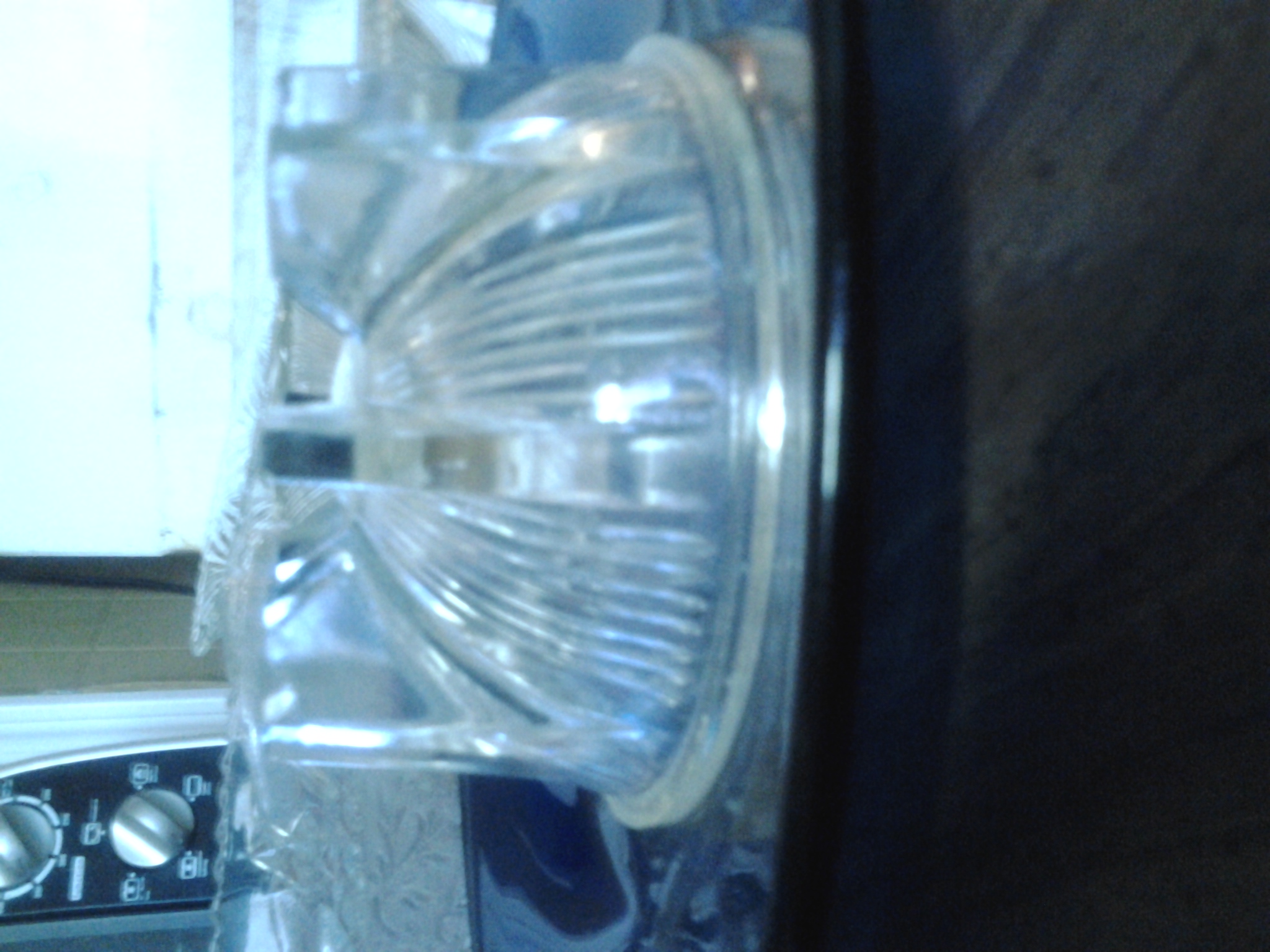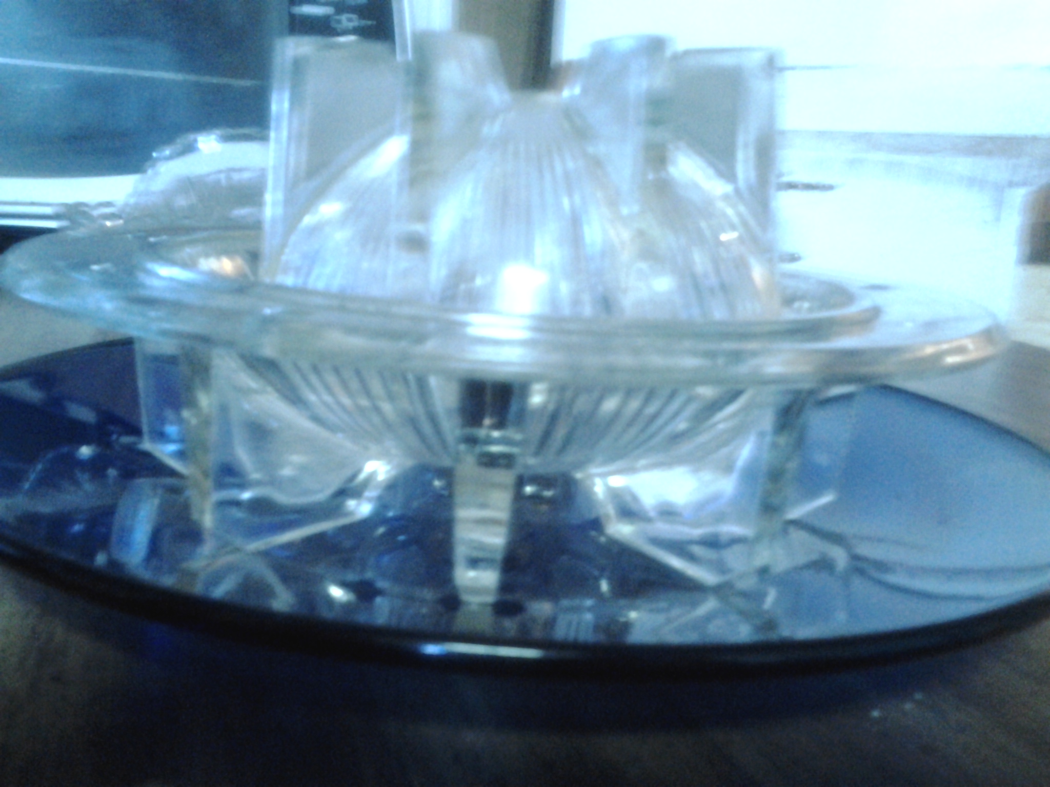 clear round glass with top and 3 small holes