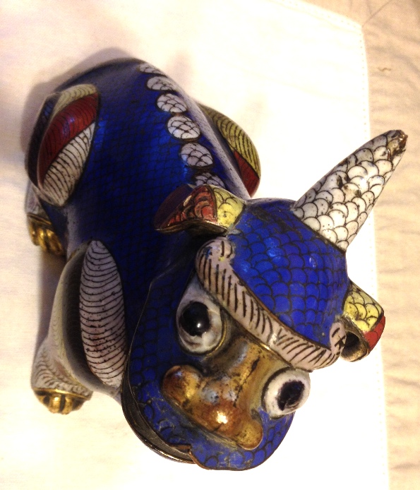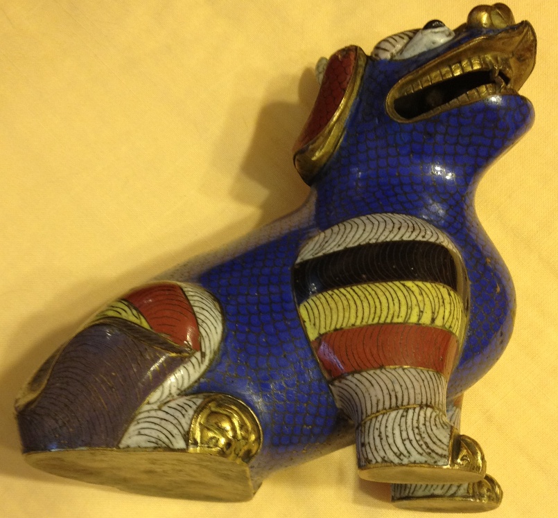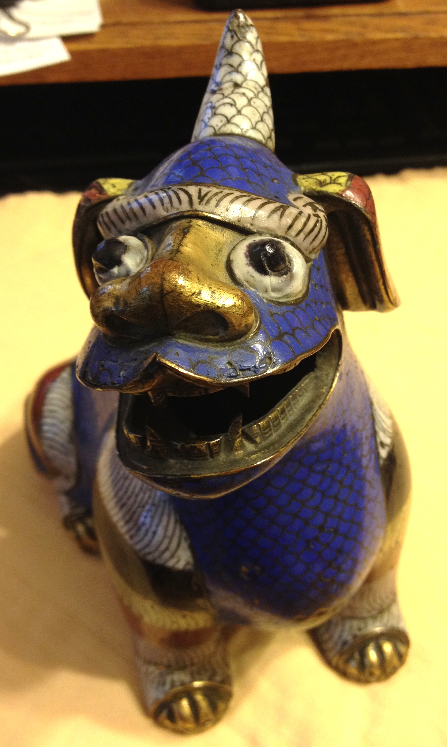 Foo Dog- cloisonne enamel- came originally from an estate in Long Island, NY- my Aunt's father was gardener for the owners, but now from the estate of my 94 yr old aunt who just died. It was appraised in 1983 in SLC, UT, but not sure where to go from here- we're in TX.