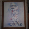 Can someone help me with the value and age of Clown with Red Hair on Canvas.  It appears to be a painting.  Size is 28 x 22.  No Frame.  It is signed.  There is a small hole in the canvas please see picture.