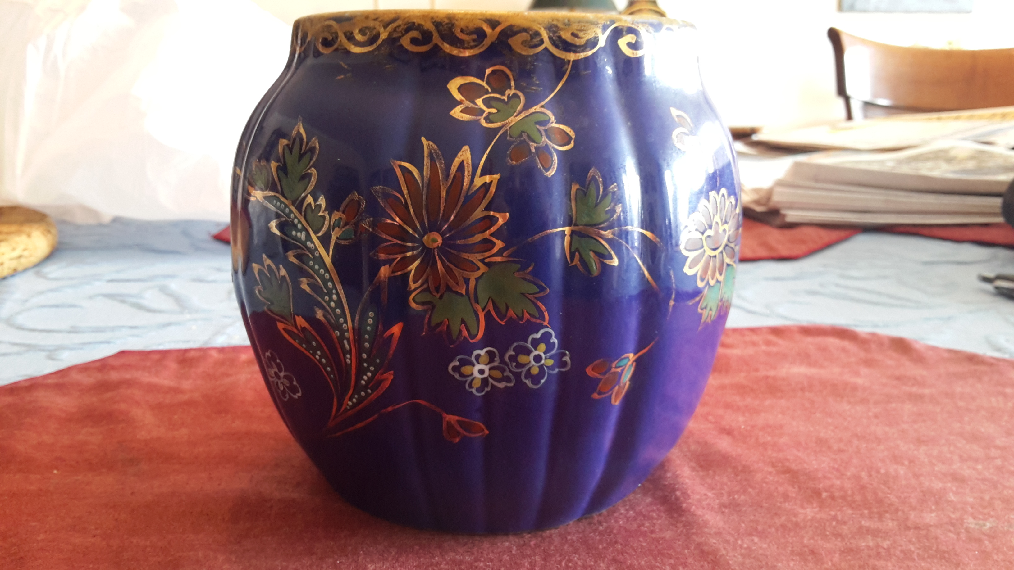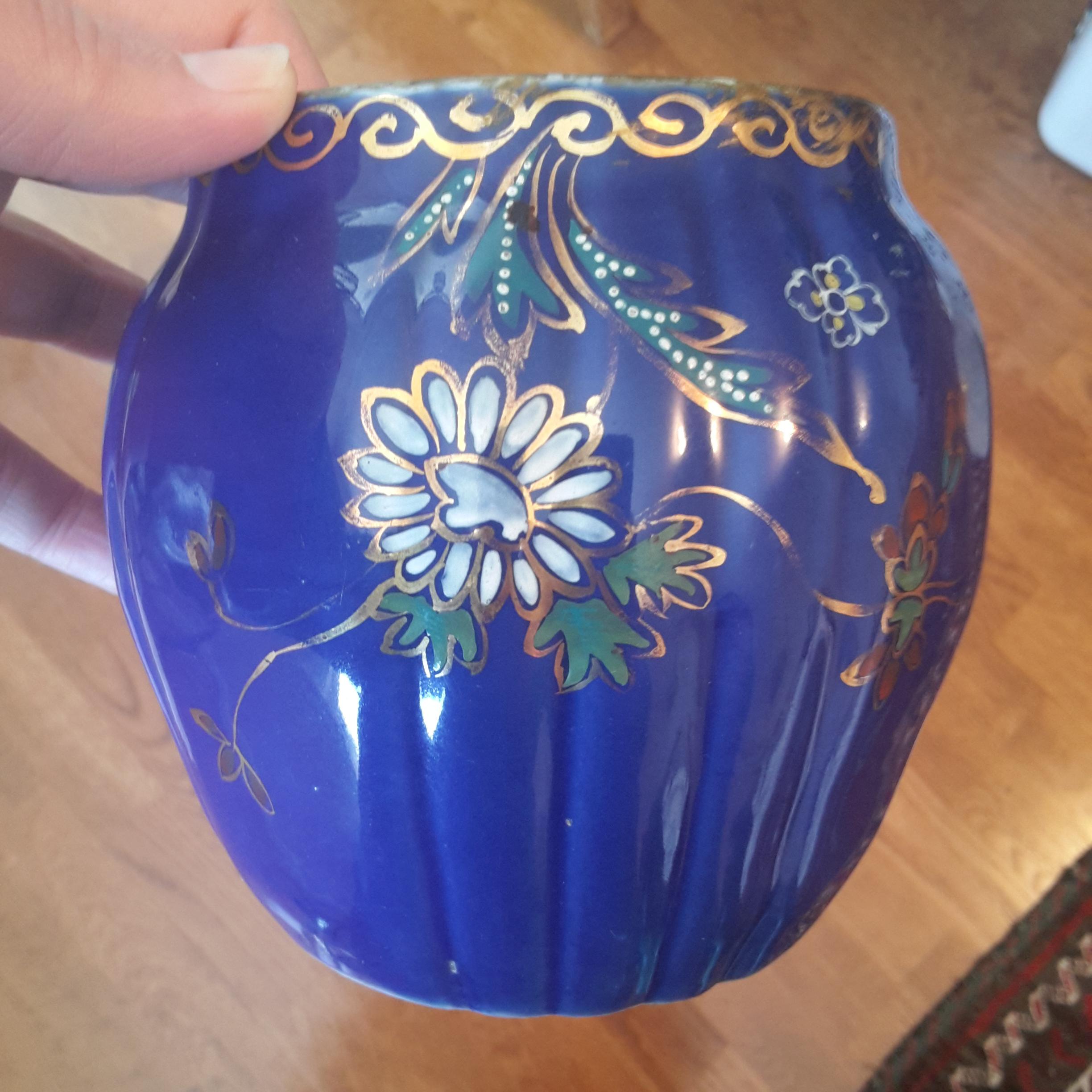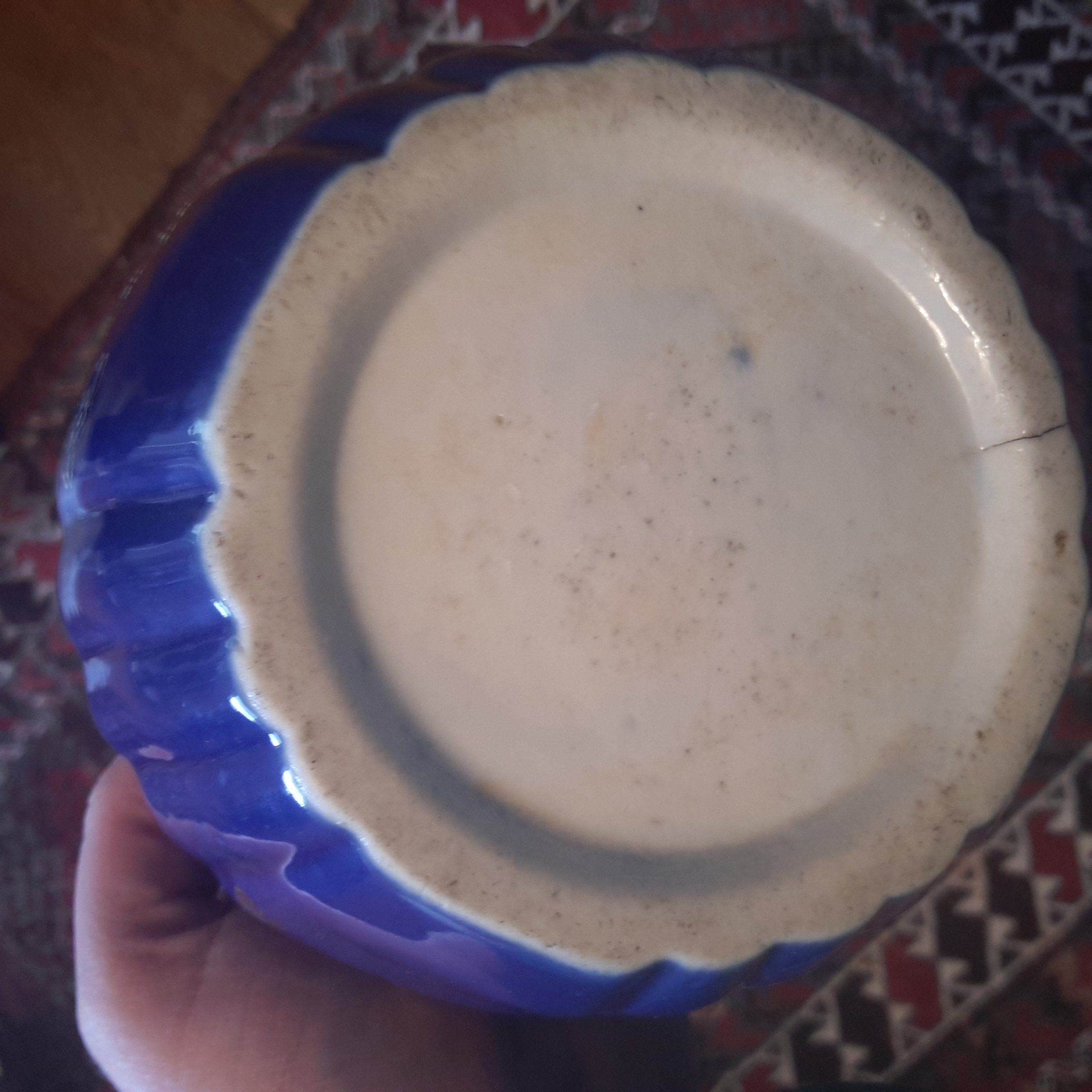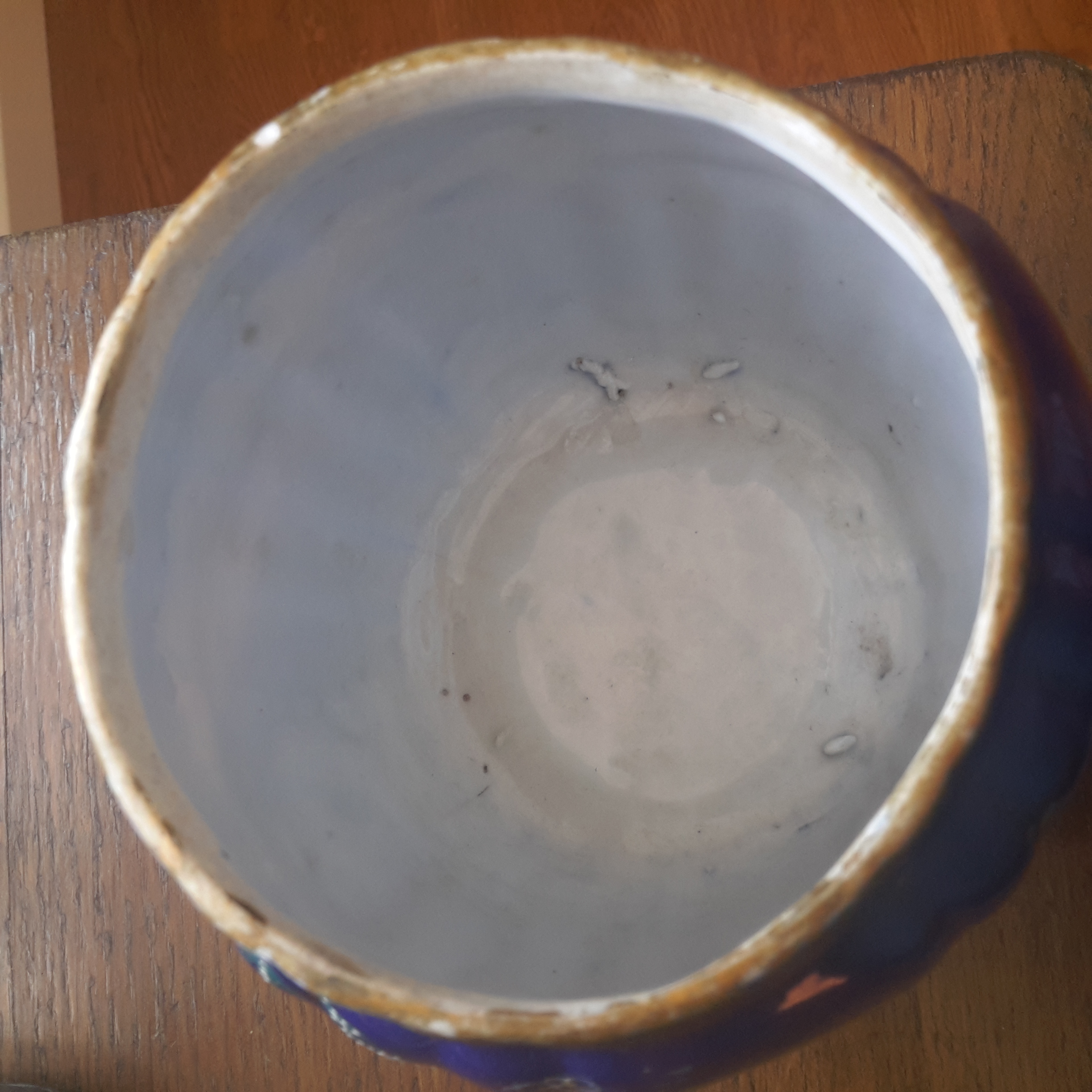 Hello, I just bought this beautiful small jardiniere (circa 6" tall, no markings), and would love to know about its origin! My best guess, judging from its condition, is that's it dates to pre-WWII, but I really have no idea. The dots painted onto the leaves remind me of the detail on some Victorian pieces I have seen...but could this be that old? Any insights as to country or date of origin would be much appreciated. Thank you!