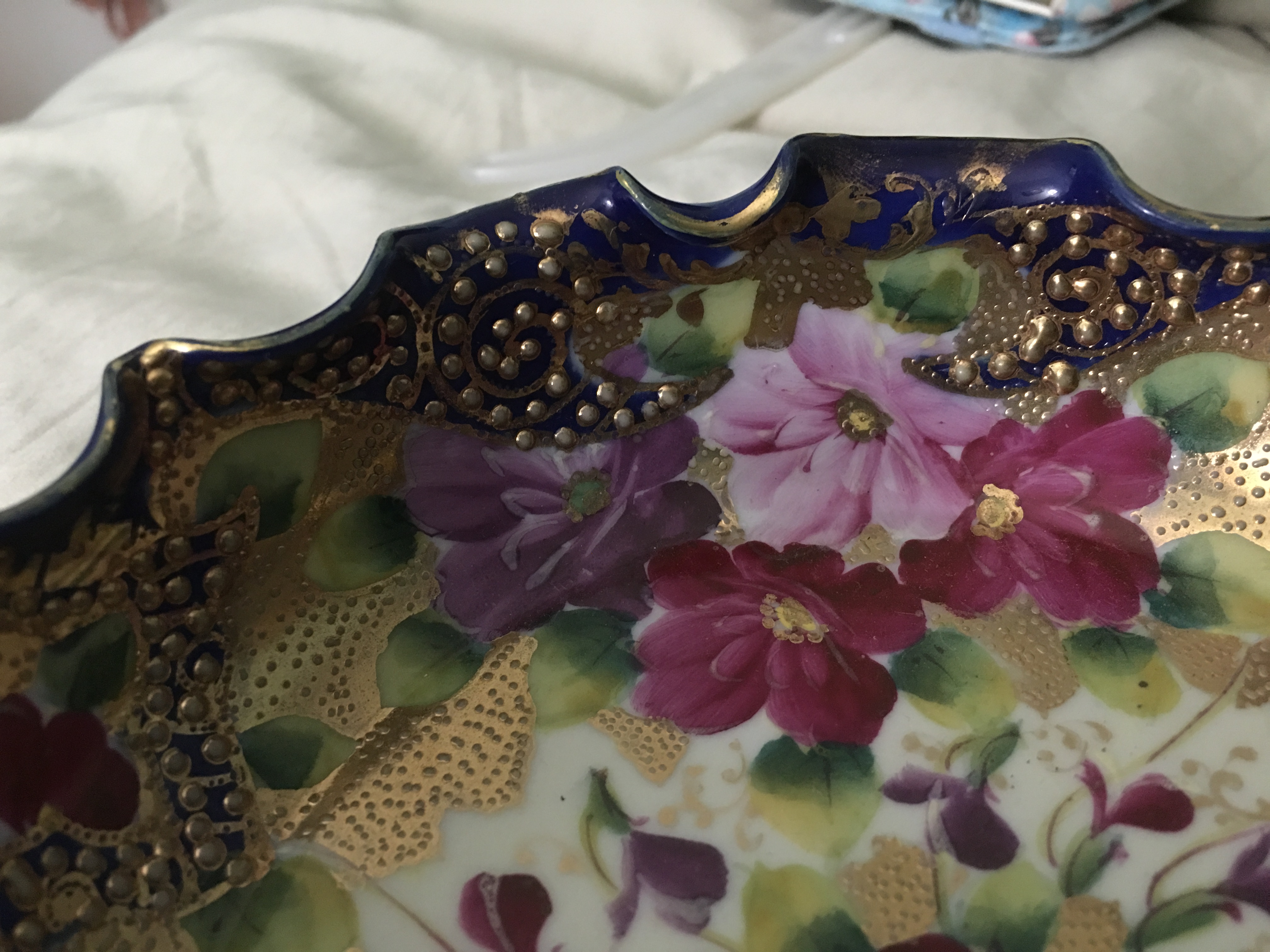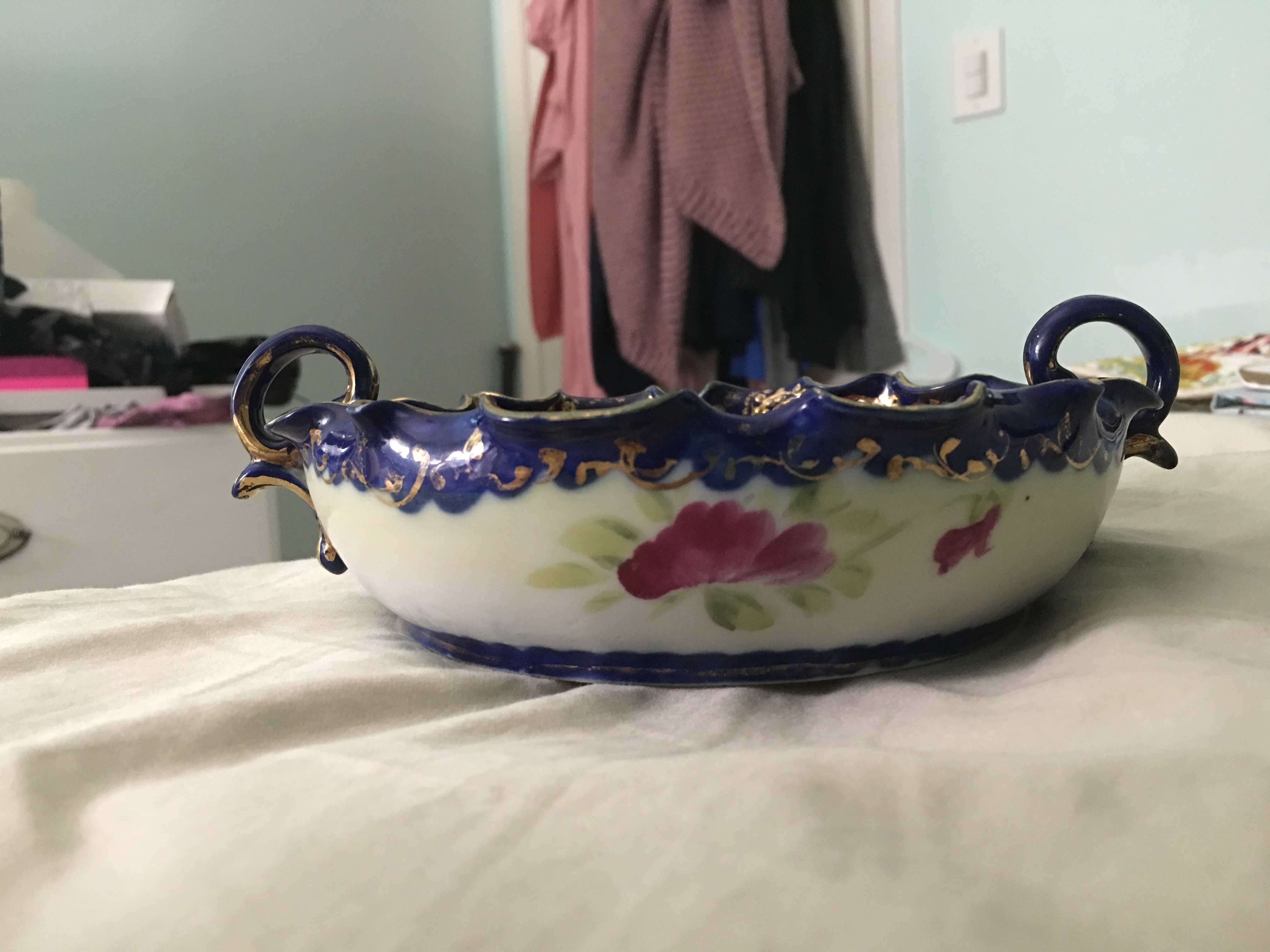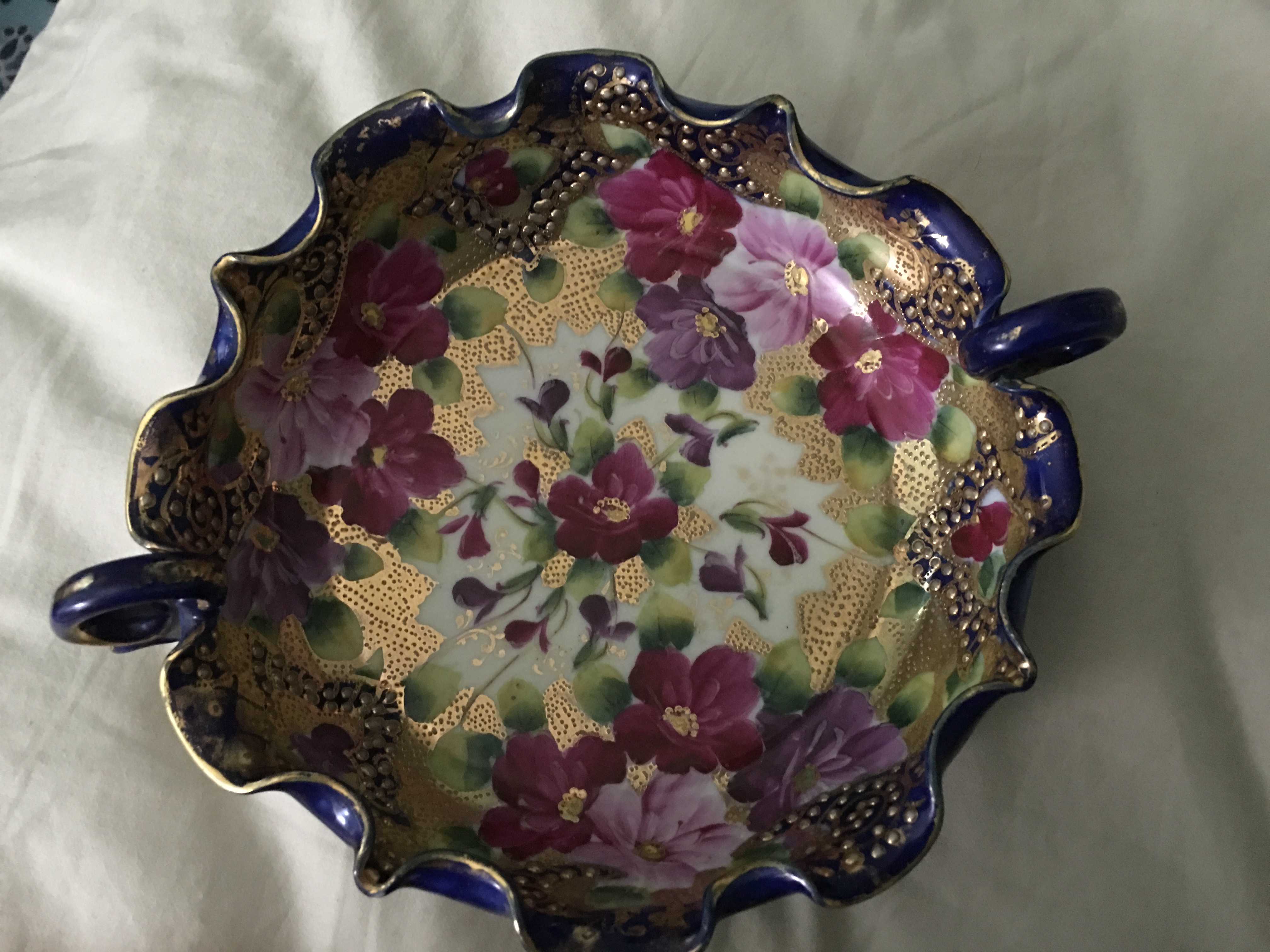 Not sure what this is exactly. I'm guessing a candy dish. It measures 6 1/2" across and is about 1 1/2" high. These is a hallmark on the bottom, but I have had no success identifying it. Any help would be greatly appreciated! Thank you!