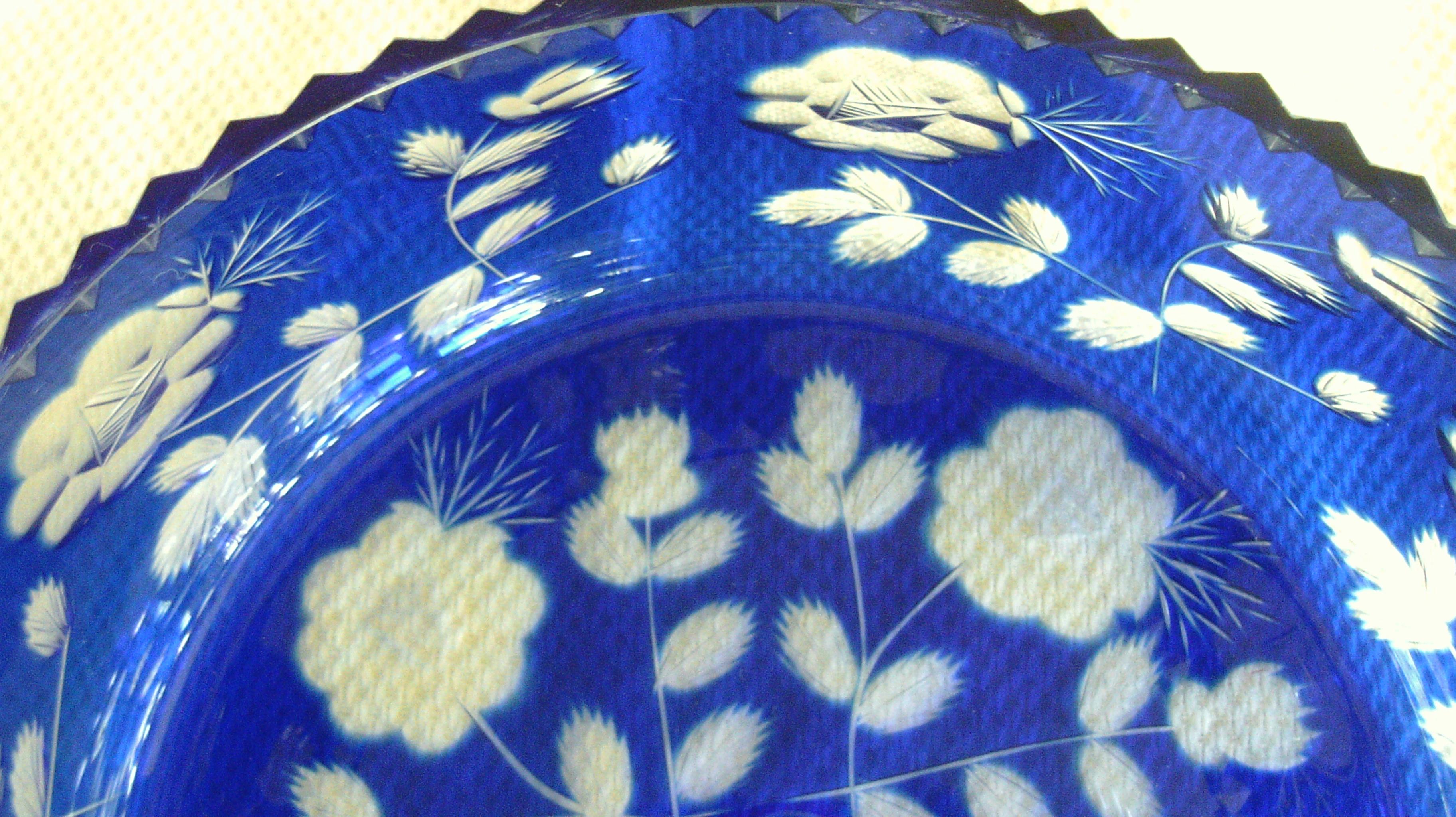 I would like to know more about this cobalt blue etched bowl. It has no markings on bottom. The top inside diameter is 7"
