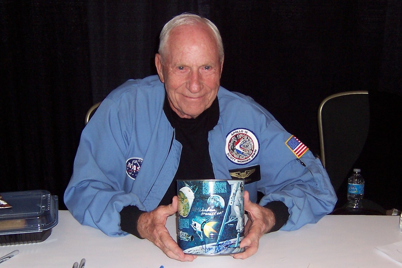 Coca Cola Company Foods Division 3 lb. sealed can of Butternut coffee, signed by three American astronauts: Tom Stafford, Al Worden and Gene Cernan. The can's lithographed artwork depicts missions in all three U.S. Space Programs: Mercury, Gemini and Apollo. Mr. Stafford is mentioned in one scene, and he signed nearby. He and Gene Cernan represent both Gemini and Apollo, while Worden represents Apollo. Mr. Cernan was the last man to have walked on the Moon, so this sealed can represents the entire Apollo Mission, Alpha-Omega.