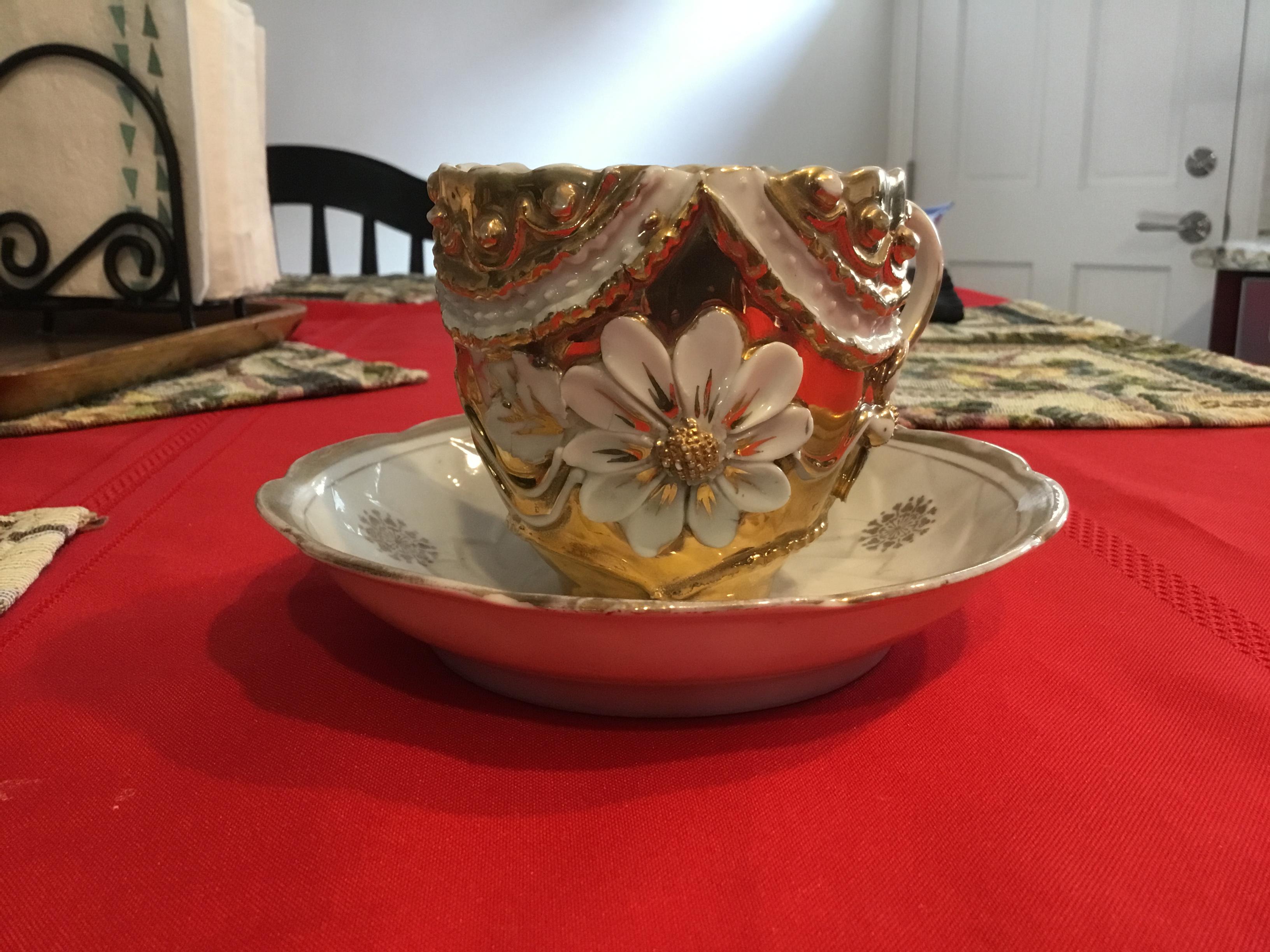 This cup is suppose to be from my 3rd Great Grandmother. The only marking on the cup is a gold 88. Saucer has no markings. You can see light through the saucer's and cup's bottom. Maybe bone china? I am interested in finding the period of this cup in order to continue my genealogy research. I was given this cup in 1969 from on of my grandmother's sisters who said the china had been divided among the many siblings. Any help would be appreciated.