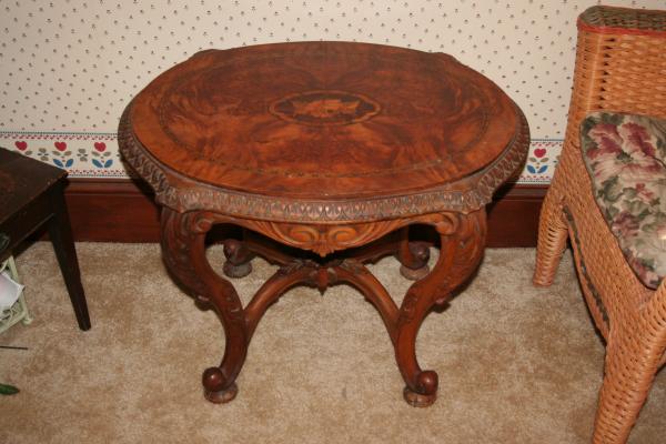 Old Coffee table. Inlay top. Hand carved markings. Wondering if anyone has any idfead what era this is from.