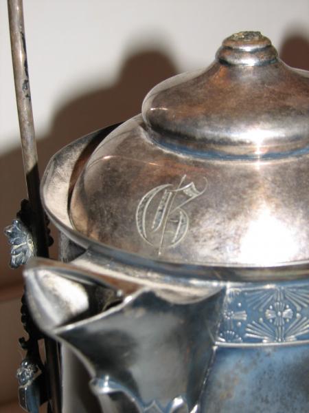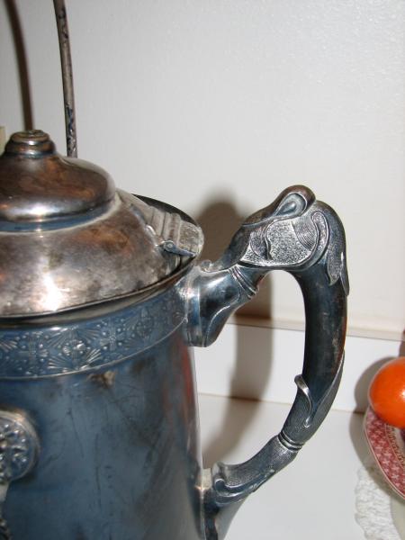 This piece has a marking on the bottom of pot, stand and goblet with an elk and Hartford, Conn. The goblet says Hartford Silver Plate Co. Quadruple Plate 1268. The stand has the same number with a fancy elk and Hartford Conn. on it. The coffee/tea server also has the elk in a circle with the number 1368. The pot has no parts inside. It had something on the lid of the pot that has been broken off. Also it appears that there was at one time something on the top of the handle as it has 3 ruff areas on it. The pot itself has heat damage on the front of it from being near heat too long. This server was purchased in North Florida and I was told it was used as a tea server in a private home. Would love to know the value and the date of the piece. Thanks!
