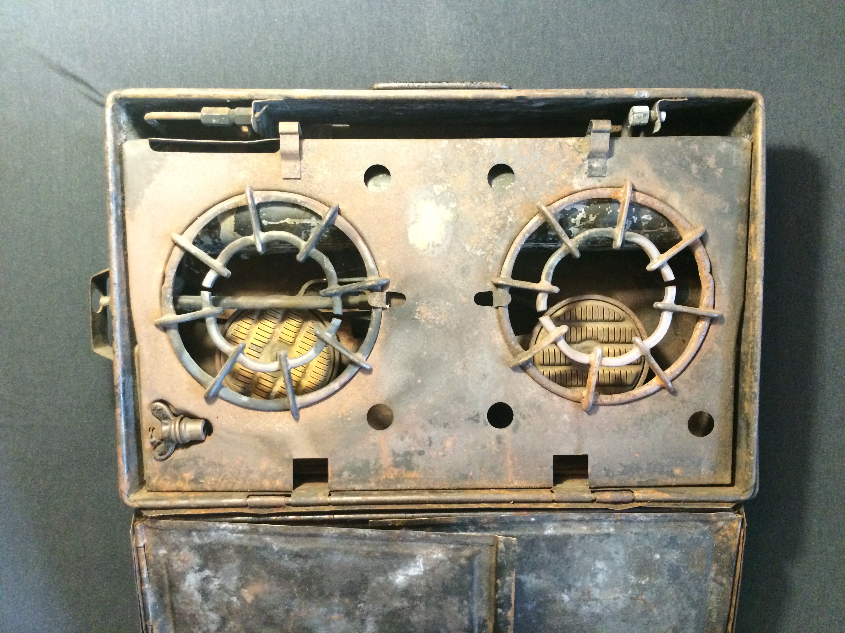 History Acquired this Stove--either a Model 1 2nd edition or a Model 2 1st edition Coleman stove--from my grandfather when he passed a few years back. There is rust on it but the metal has not be compromised. All indications show that it has all original pieces and parts.