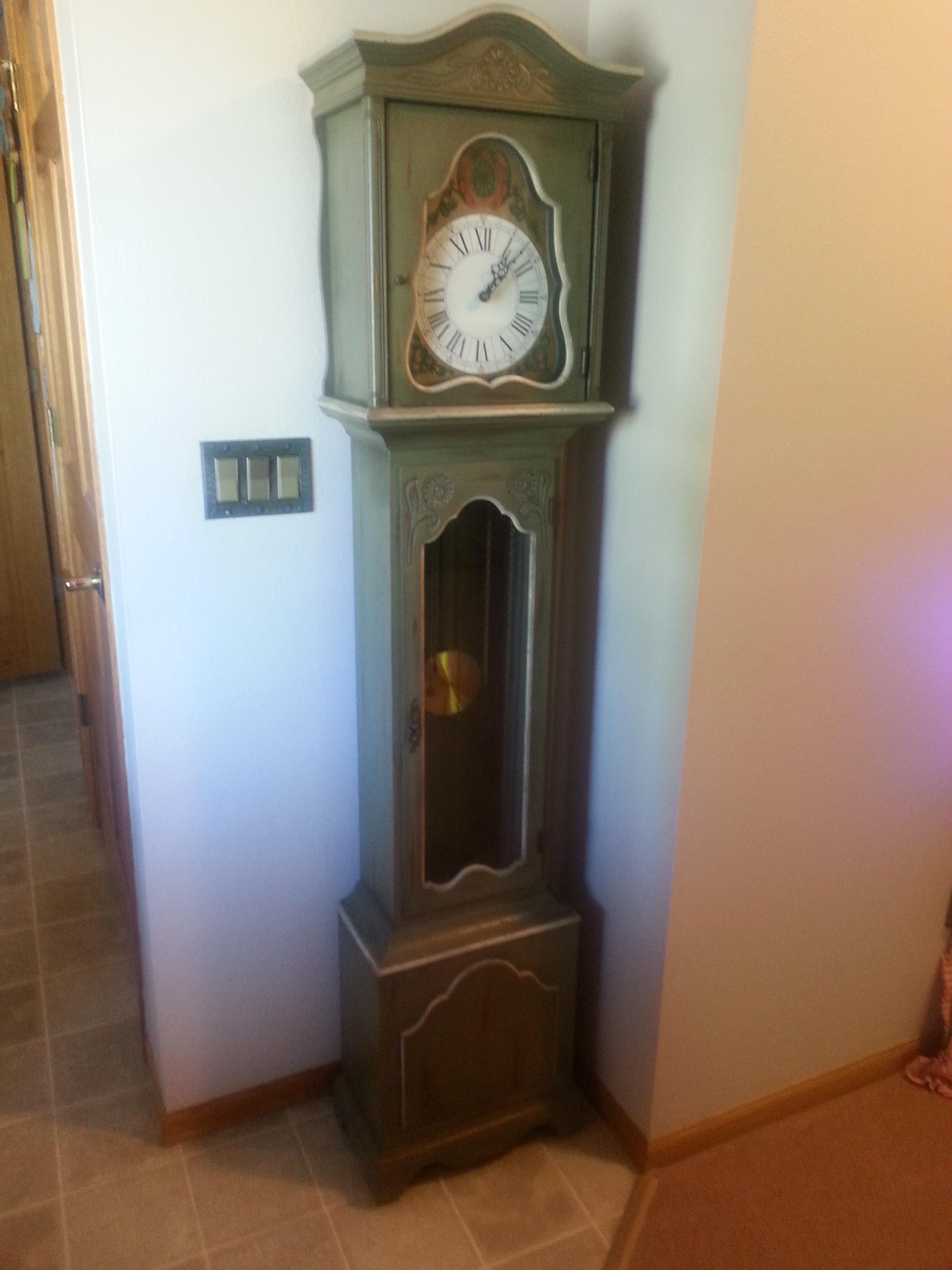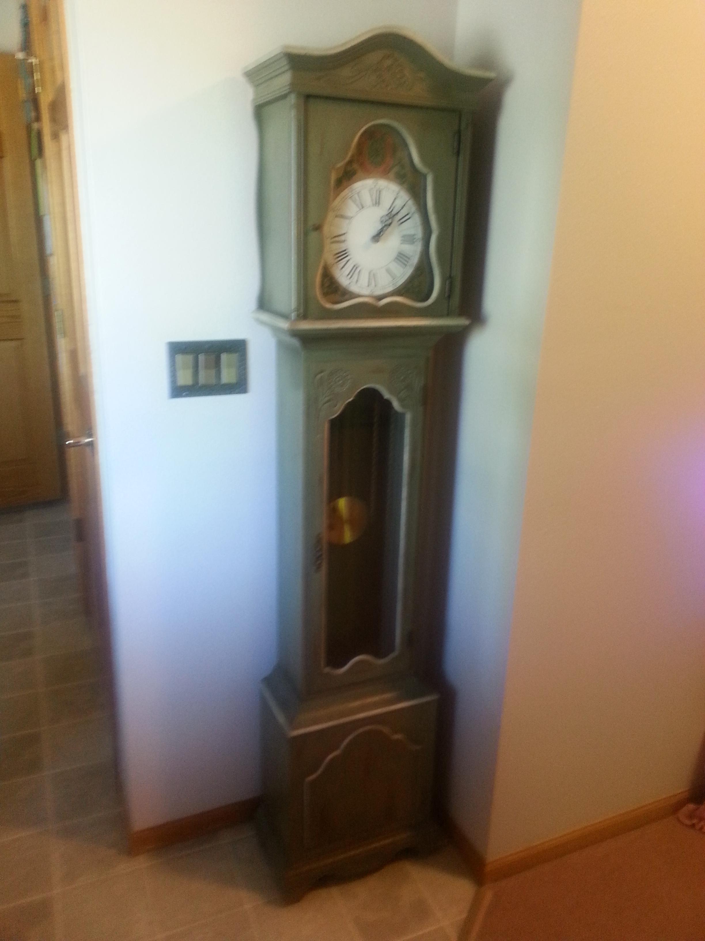 Hi there, I have the same model number but mine is brown wood.. has yours been painted? Mine also has three weights that hang inside....do you have yours? I bought mine recently at a resale shop in Milwaukee, Wisconsin. I paid $136 for it; it was originally listed at $225 but it had been there for over 5 months, so the price was reduced 5 times. The middle chain was stuck on the rivet wheel, but I was able to fix it. I have to figure out how to fix the hour chime... if it's 5 o'clock, it'll chime 11 times instead of 5, etc... I am wondering, too, what it is worth and what year it was produced... let me know where you got yours and if you found out any information on it! Thanks, Heidi