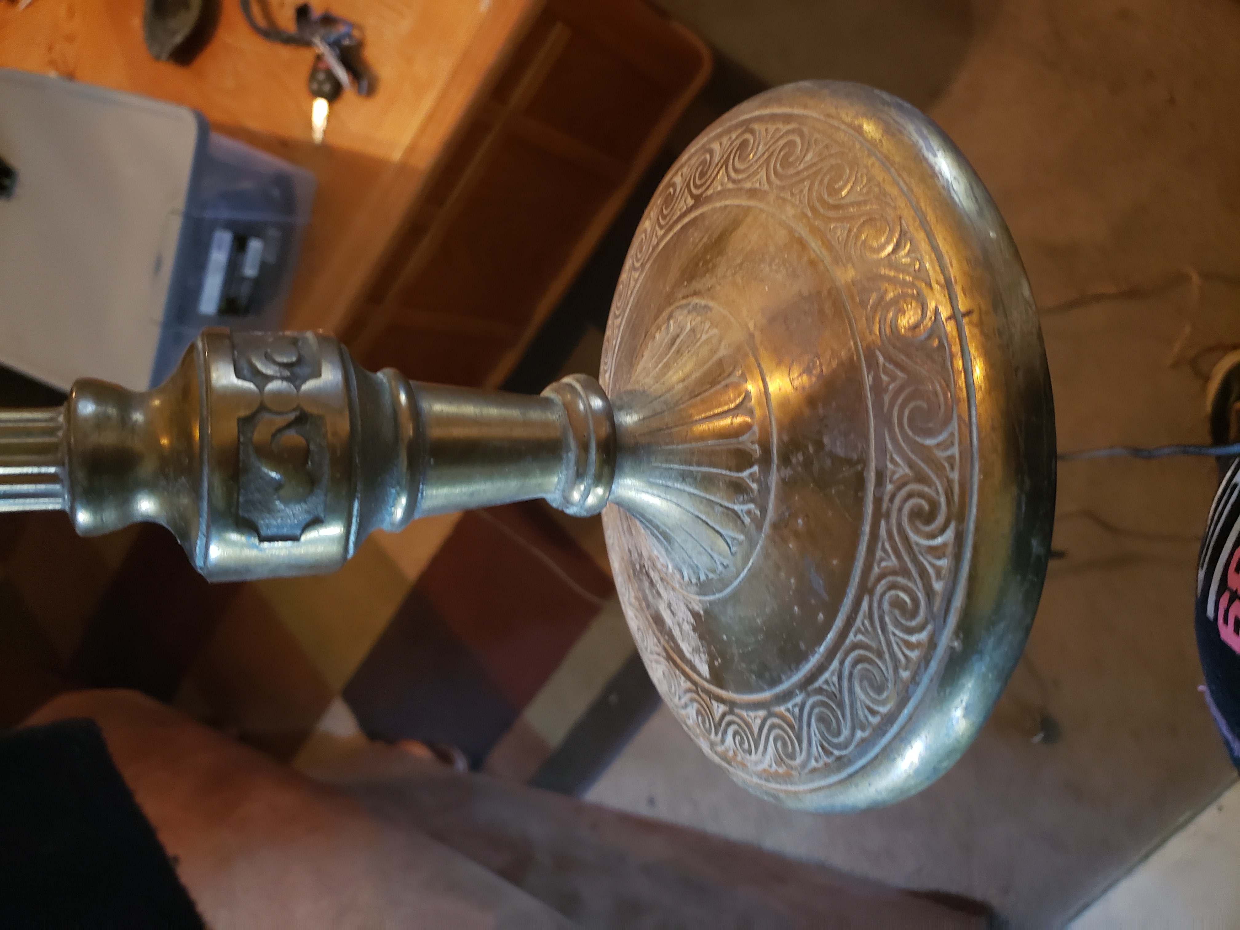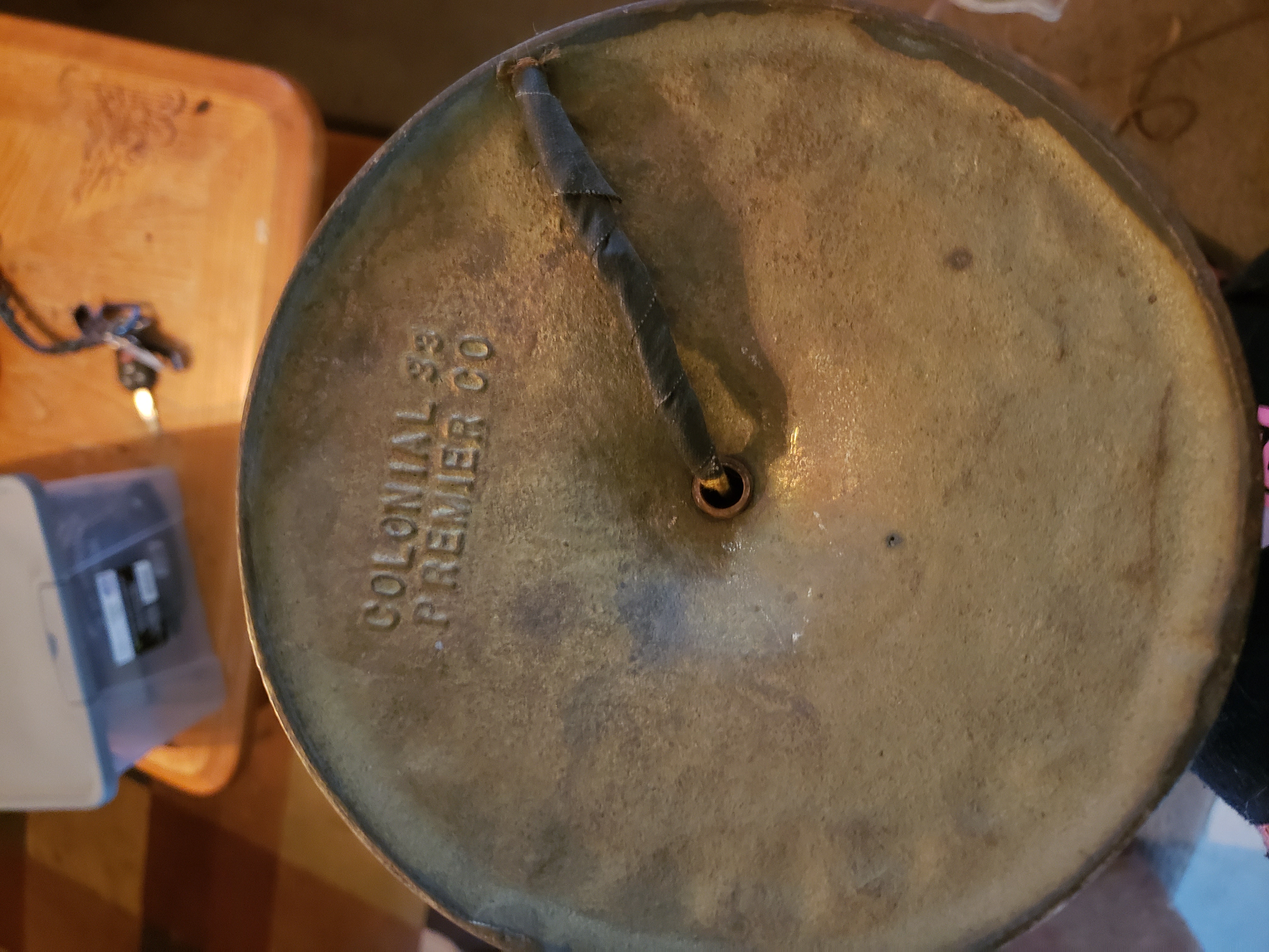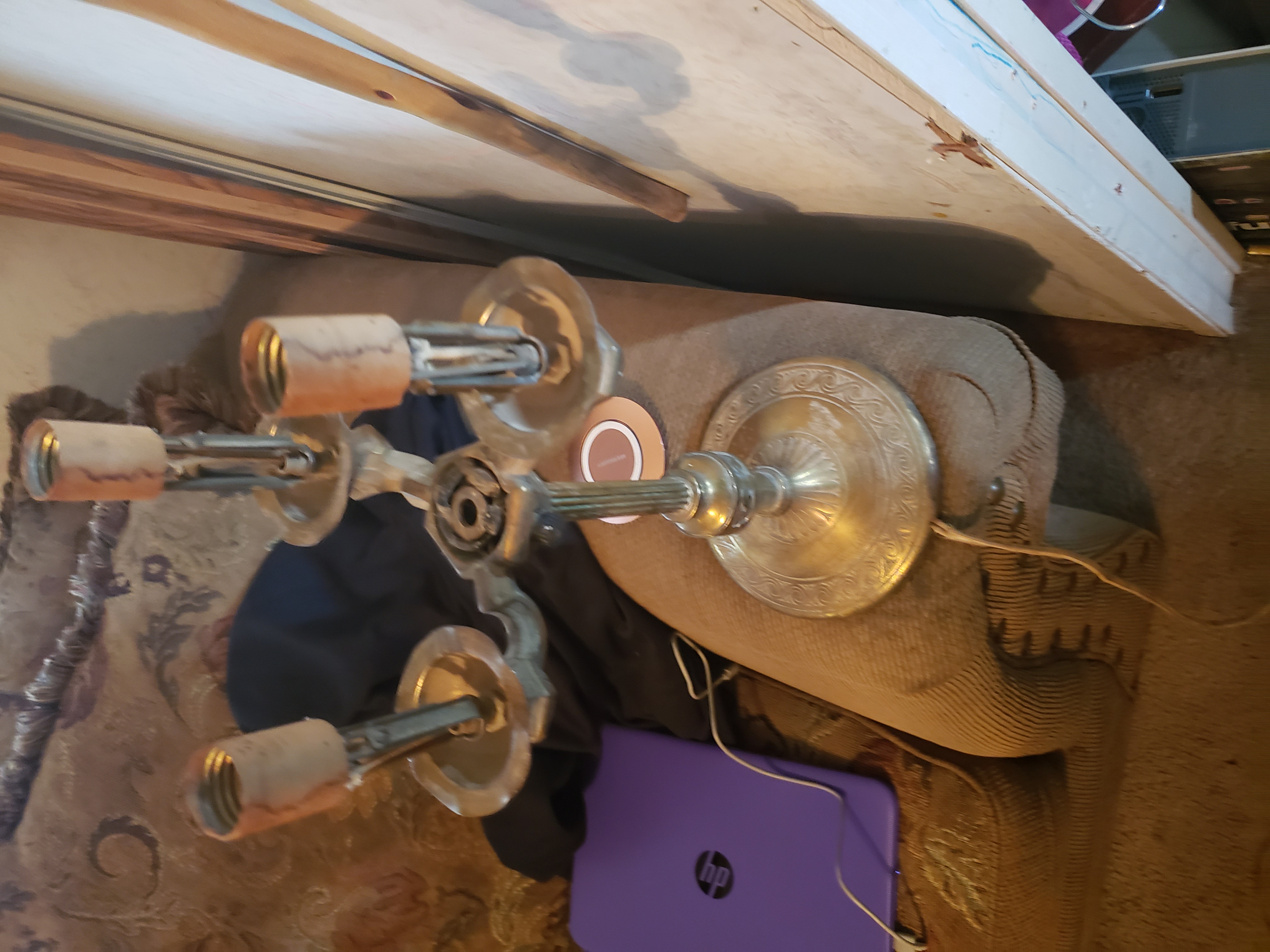 3 bulb brass or metal lamp with COLONIAL 33 premier co on bottom