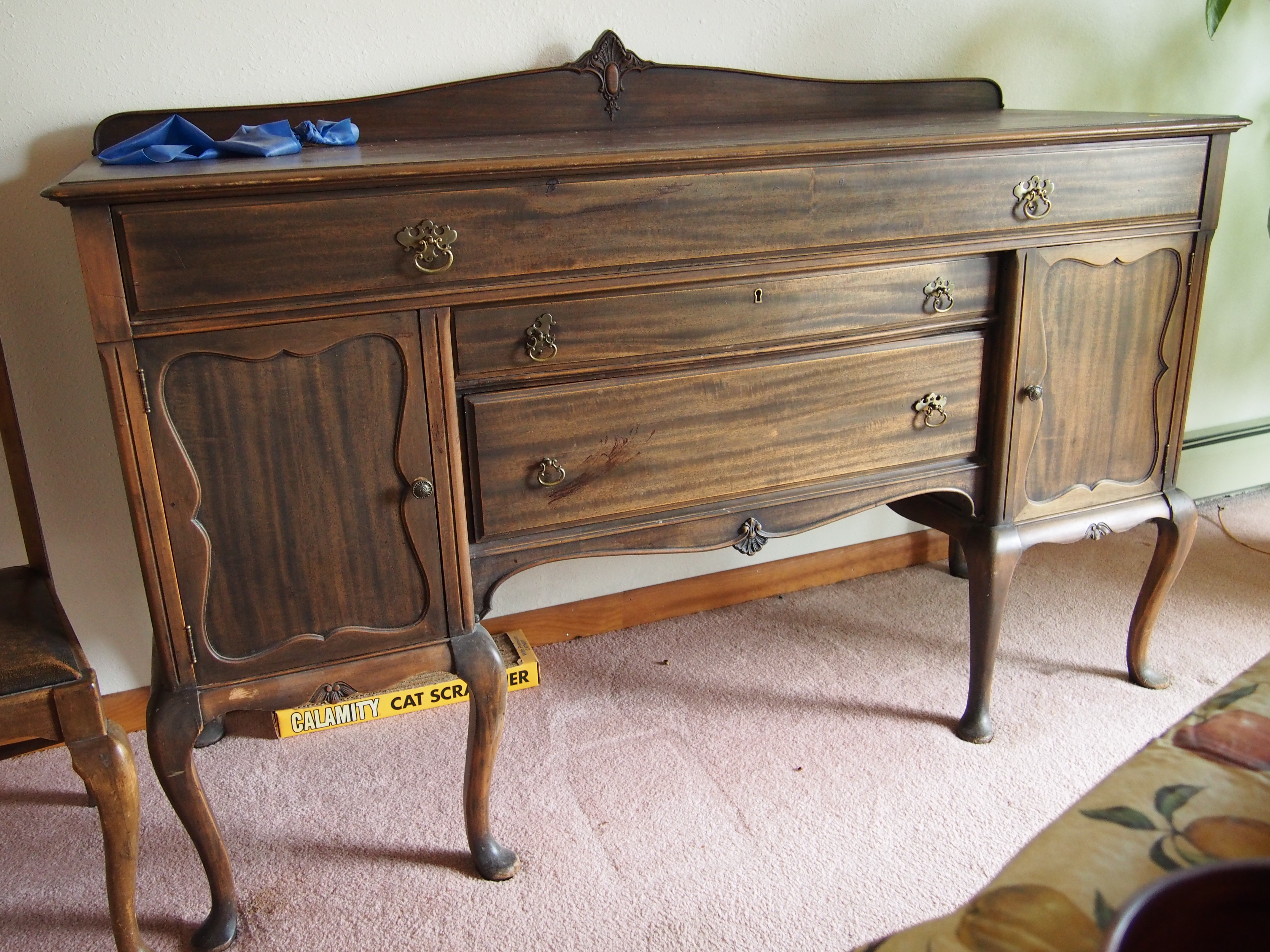 Dinning room set  has an oval shaped dinning table two butterfly leafs (not pictured). Also has all 4 orginal chairs (one not pictured), and the buffet cabinet.  Furniture was made by O. W. Richarson & Company in the 1930's.