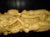 Long brass neck attatched to multi colored glass base with night light inside glass the glass sits on more brass. The bottom has a marking that says F6104