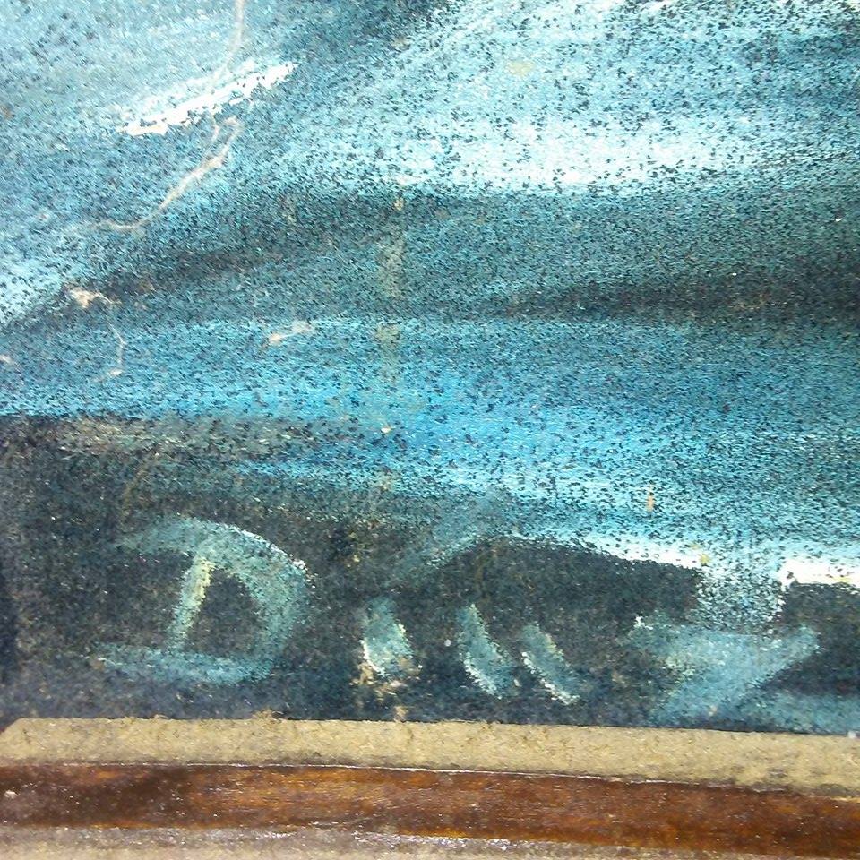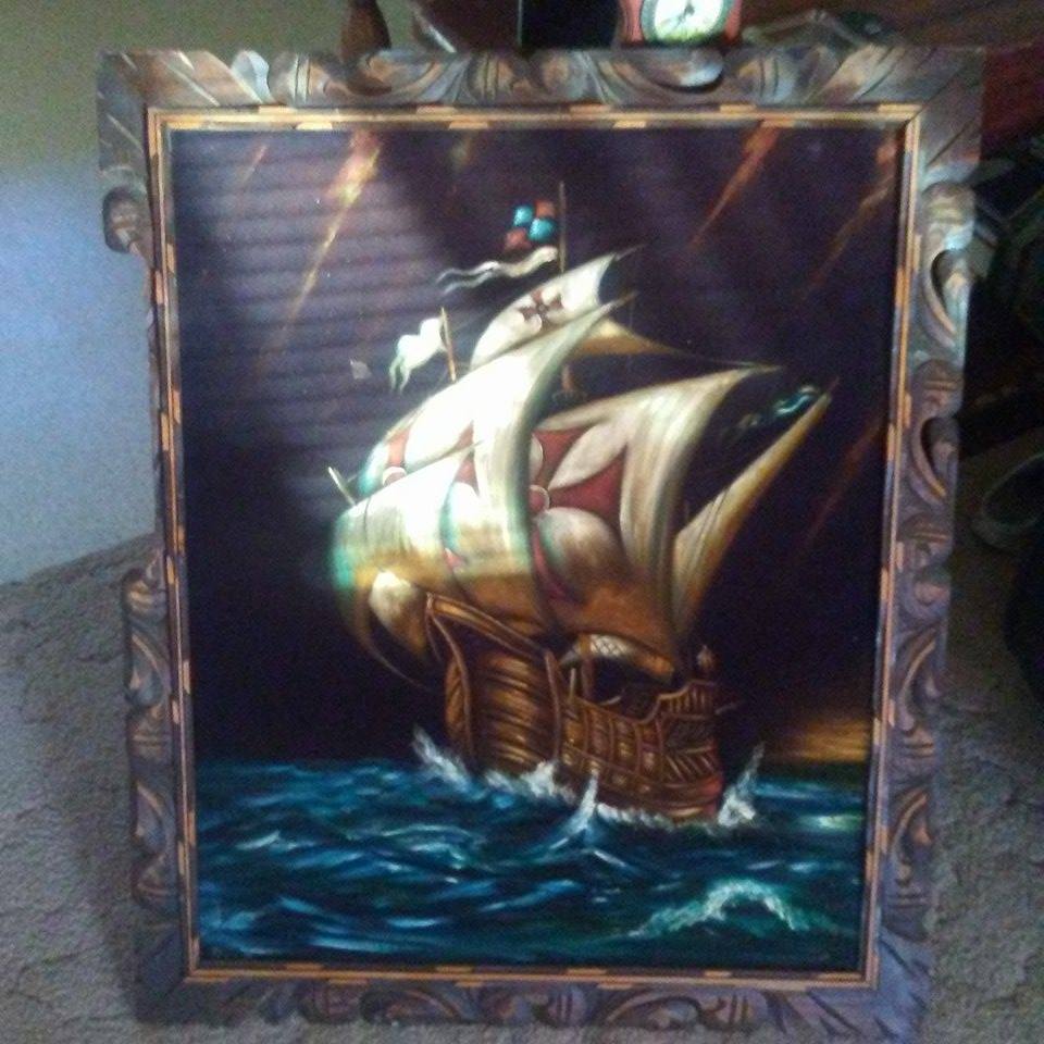 The name looks like Diaz or Dint. The painting is on felt. It belongs to my aunt.
