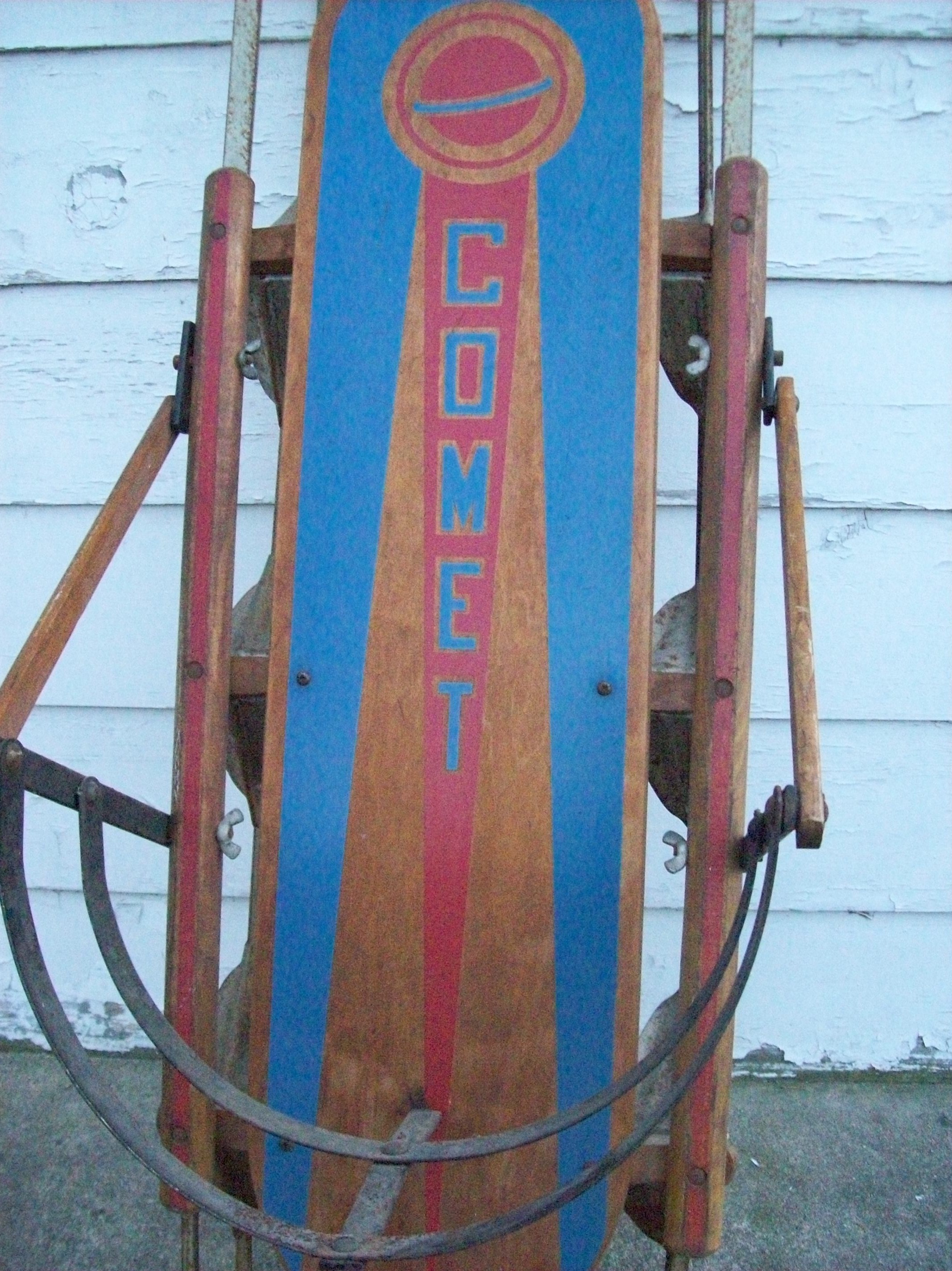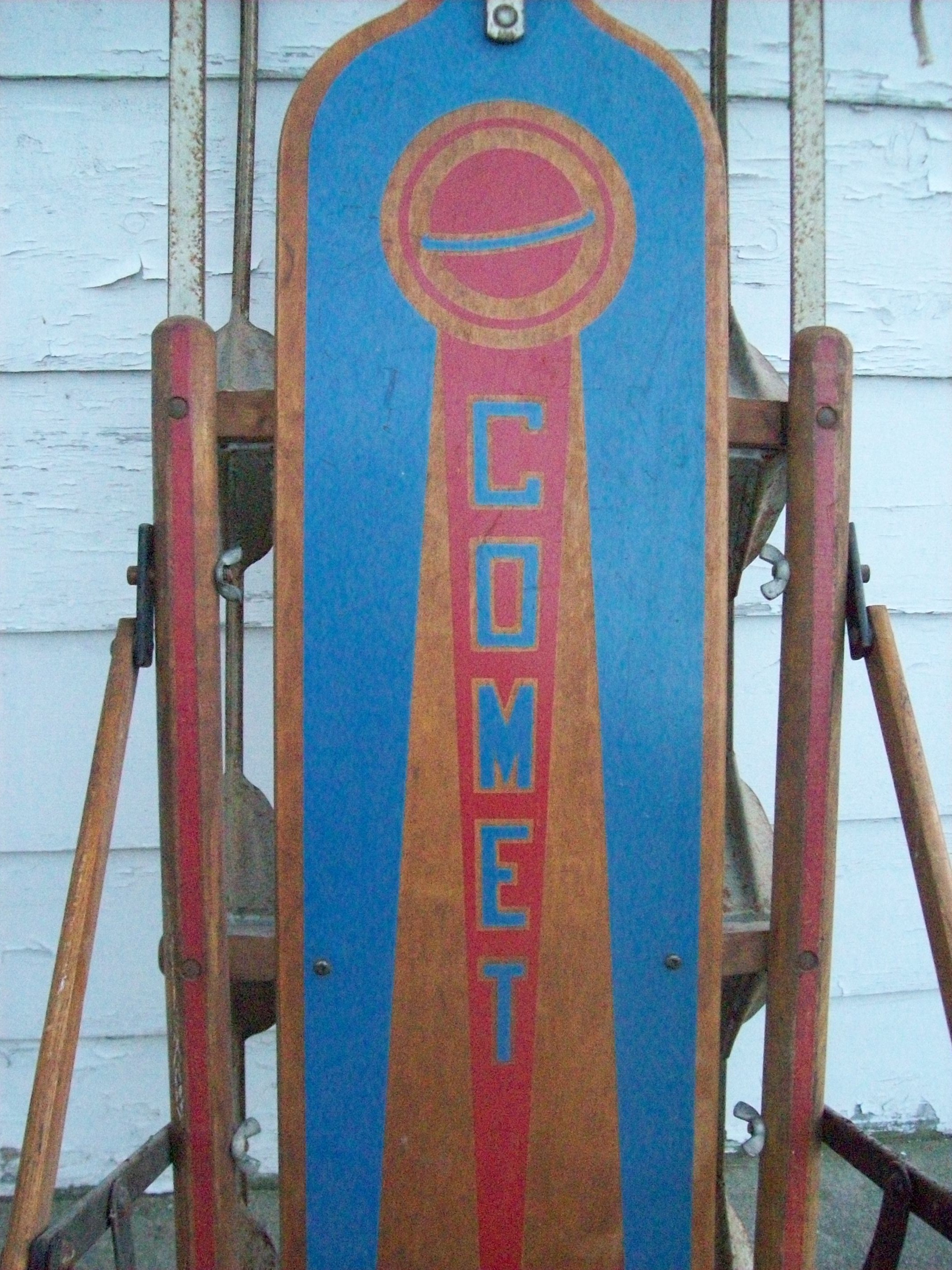 Re: COMET SNOW SLED VINTAGE METAL RAIL, BACK & WOOD RACING...