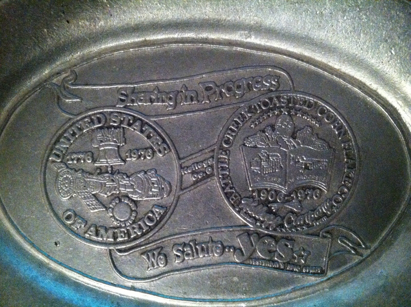 This cast aluminum plate reads 'United States Of America 1776-1976' '200 years of progress' on one side and 'Battle Creek Toasted Corn Flake Co. 1906-1976' '70 years of progress' 'Kellog Company' on the other. Through the center it reads 'Sharing in Progress' Kellog CO. O' 'We Salute..yes yesterdays epic spirit'. I've scoured the internet and can barely find mention of it, no walues, no pictures, and no explanations. The plate is fairly crudely made and its not signed, stamped or marked in any way that I can see. Any help would be apreciated, thanks, Eric.