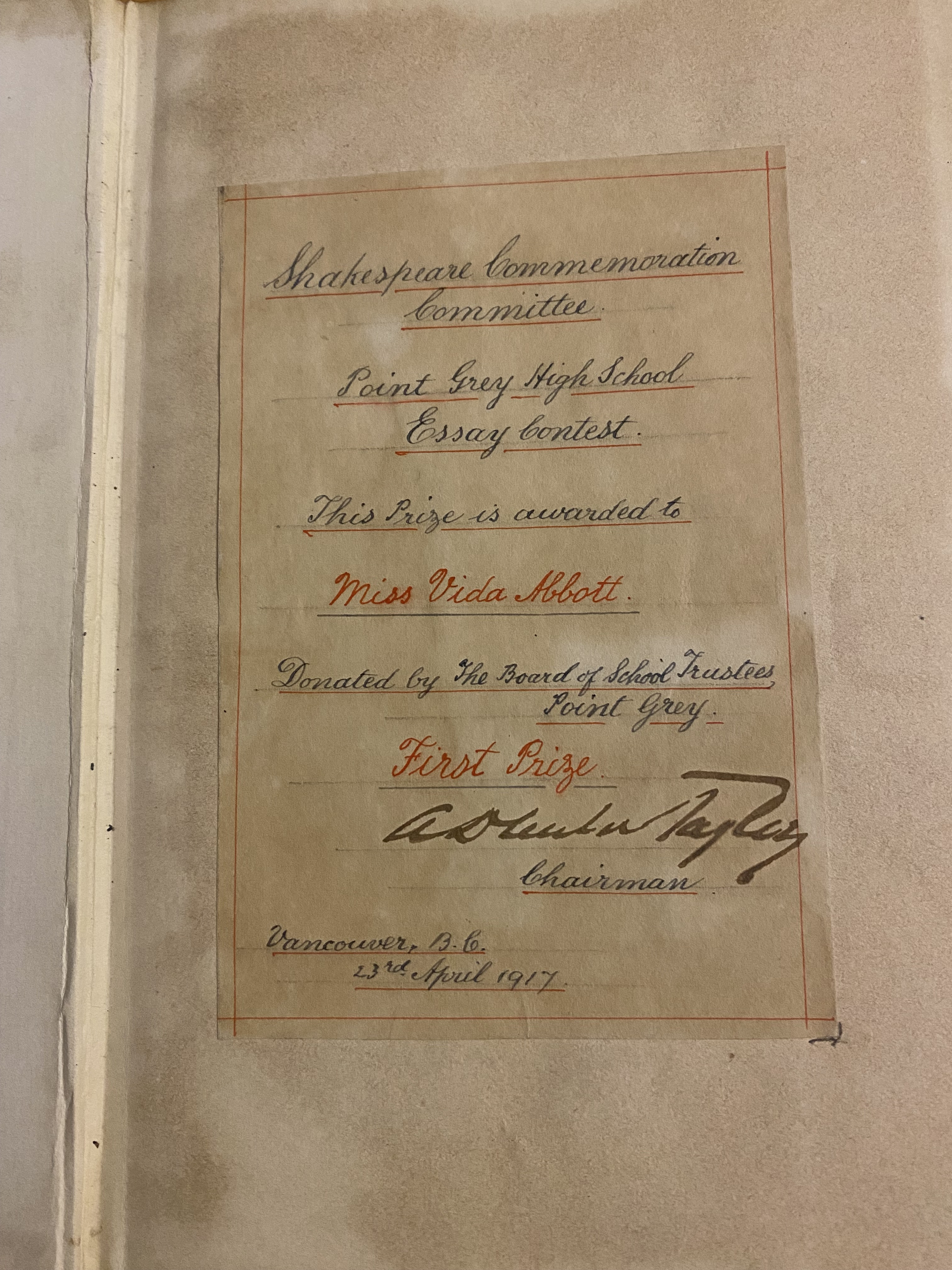 This book was acquired in Washington state. Edited in 1904 by W.J. Craig. and Published by Henry Frowde. Awarded and owned by a Miss Vida Abbott in an Essay Contest at the Pointe Grey High School of Toronto Canada in 1917. The book is bound to a green leather like material. Its condition is very fragile. The back page is stamped by the Thomas Stationary Company. Heresy there is only 36 known copies of this book ever published before the editor died in the early 1900's.