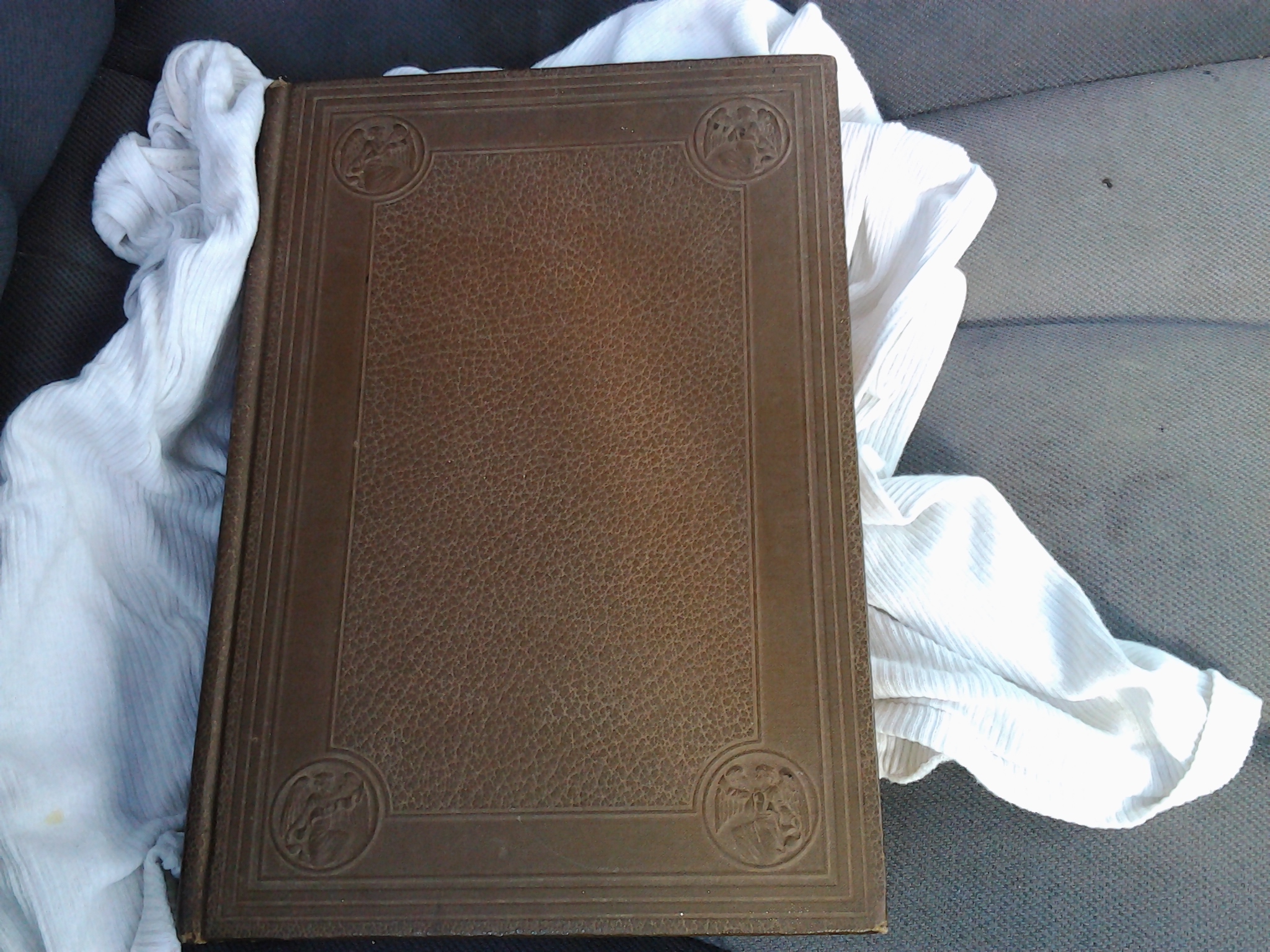 It has an angel in each corner on the cover and has M.F. ESSIG on the side