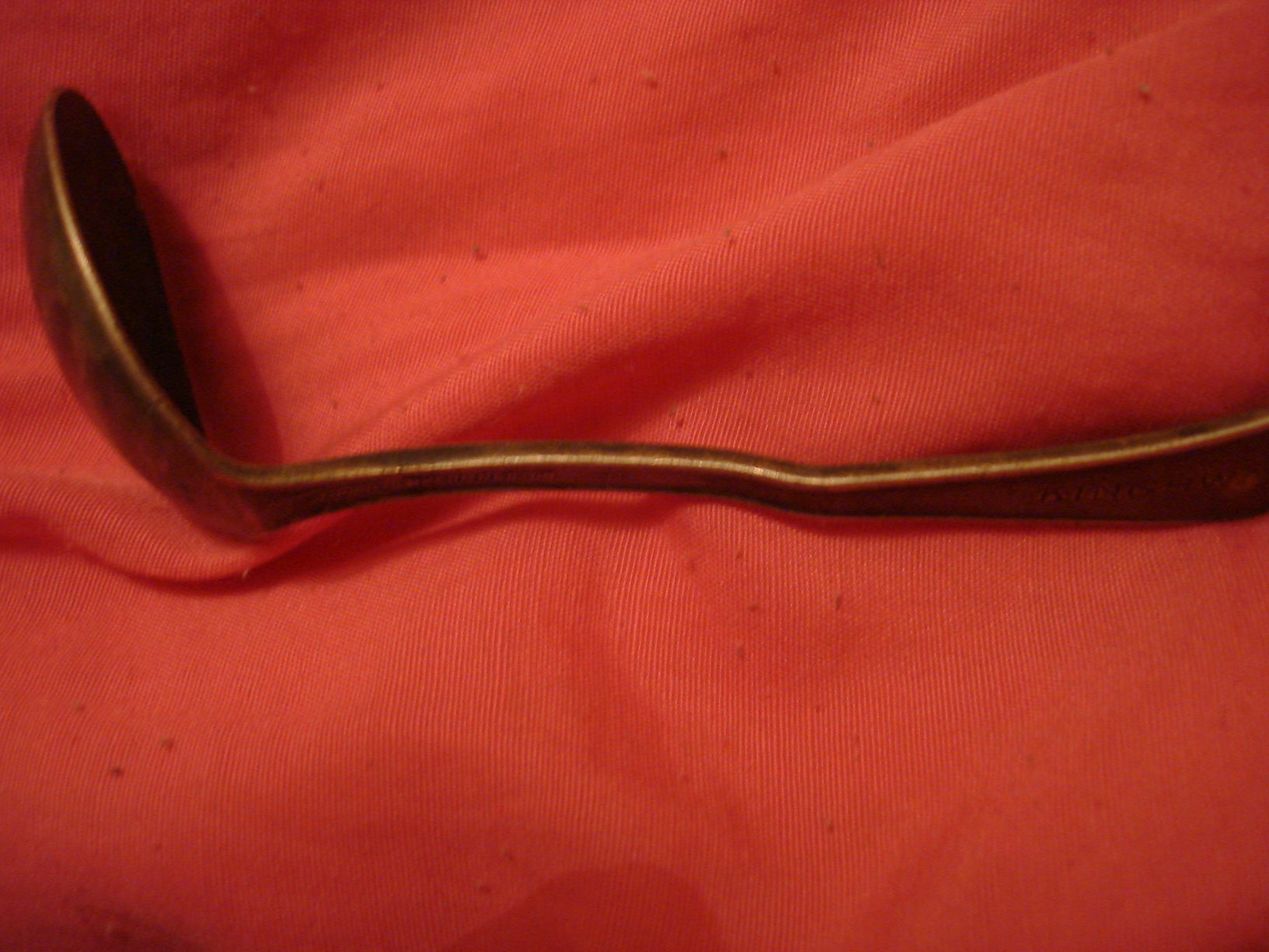 HALF THE HANDLE IS ARCHED.. the bowl of the spoon is bent like a condiment spoon maybe?