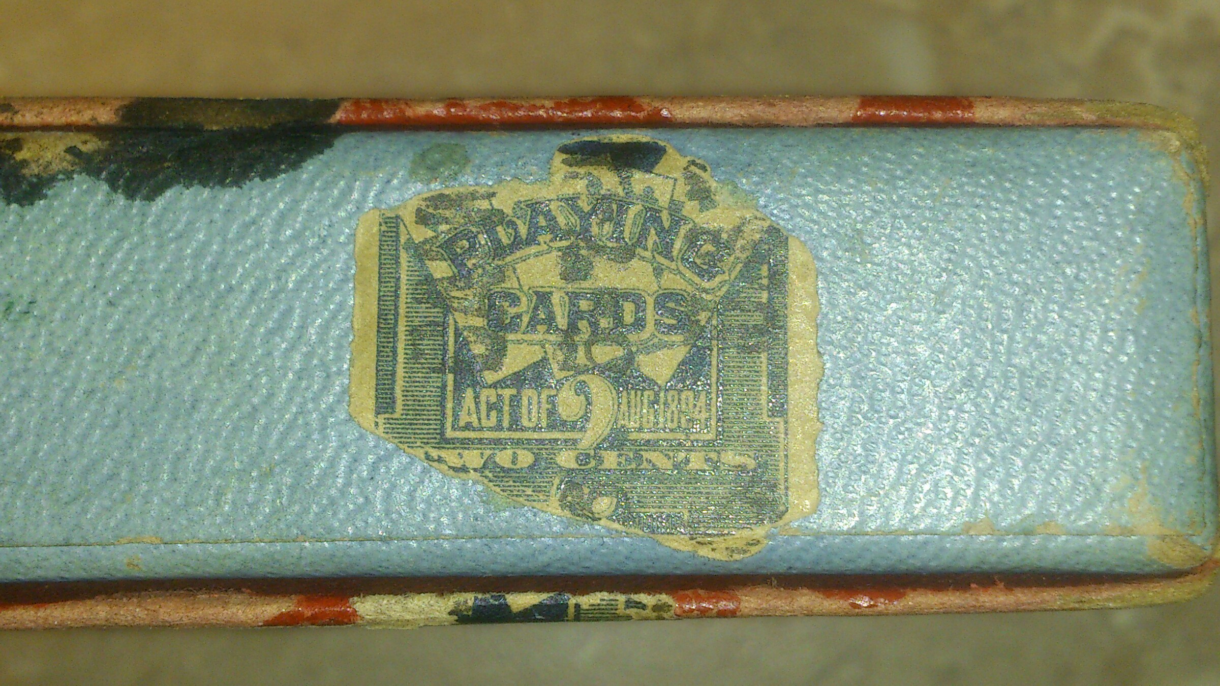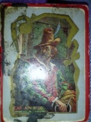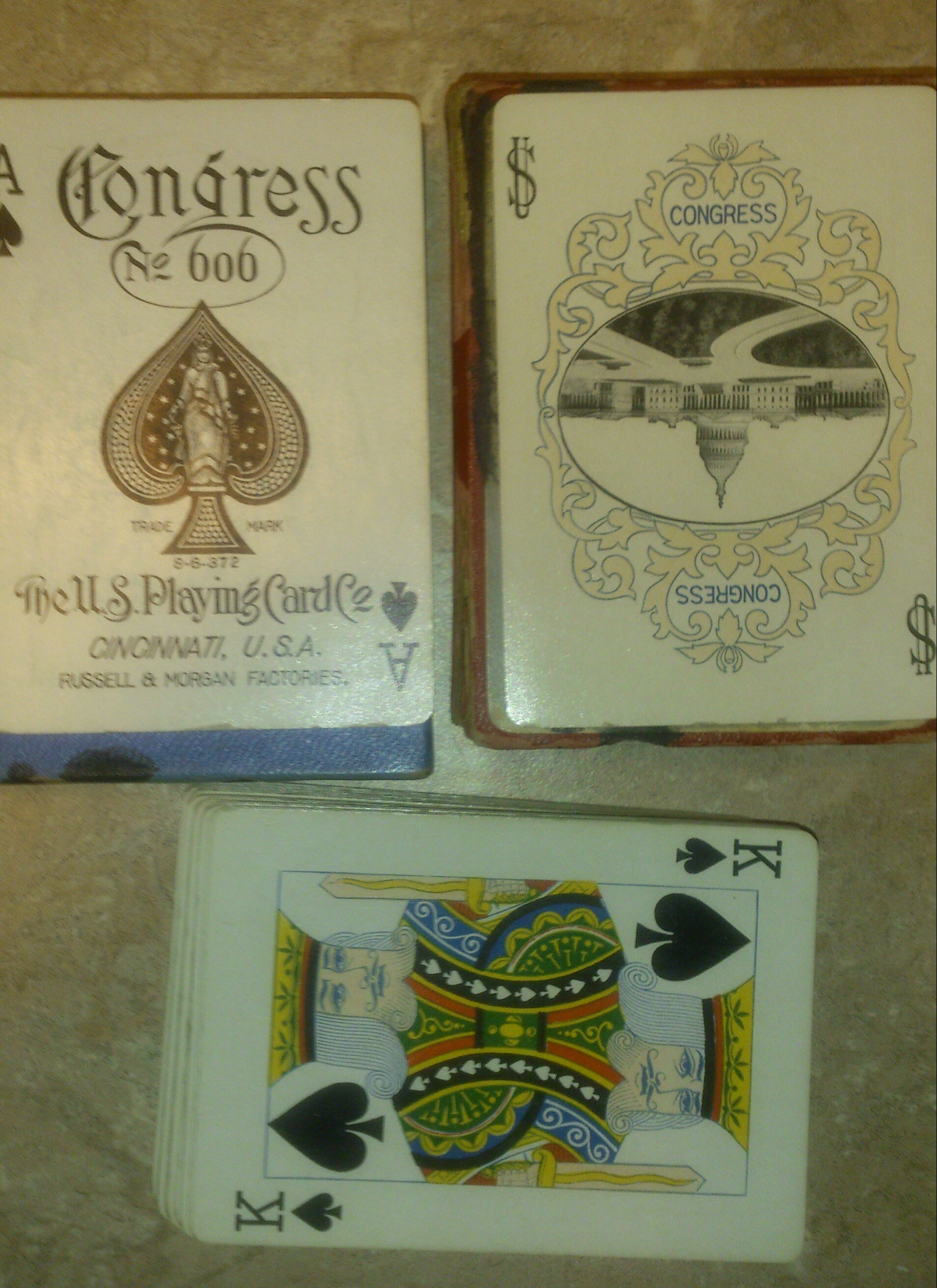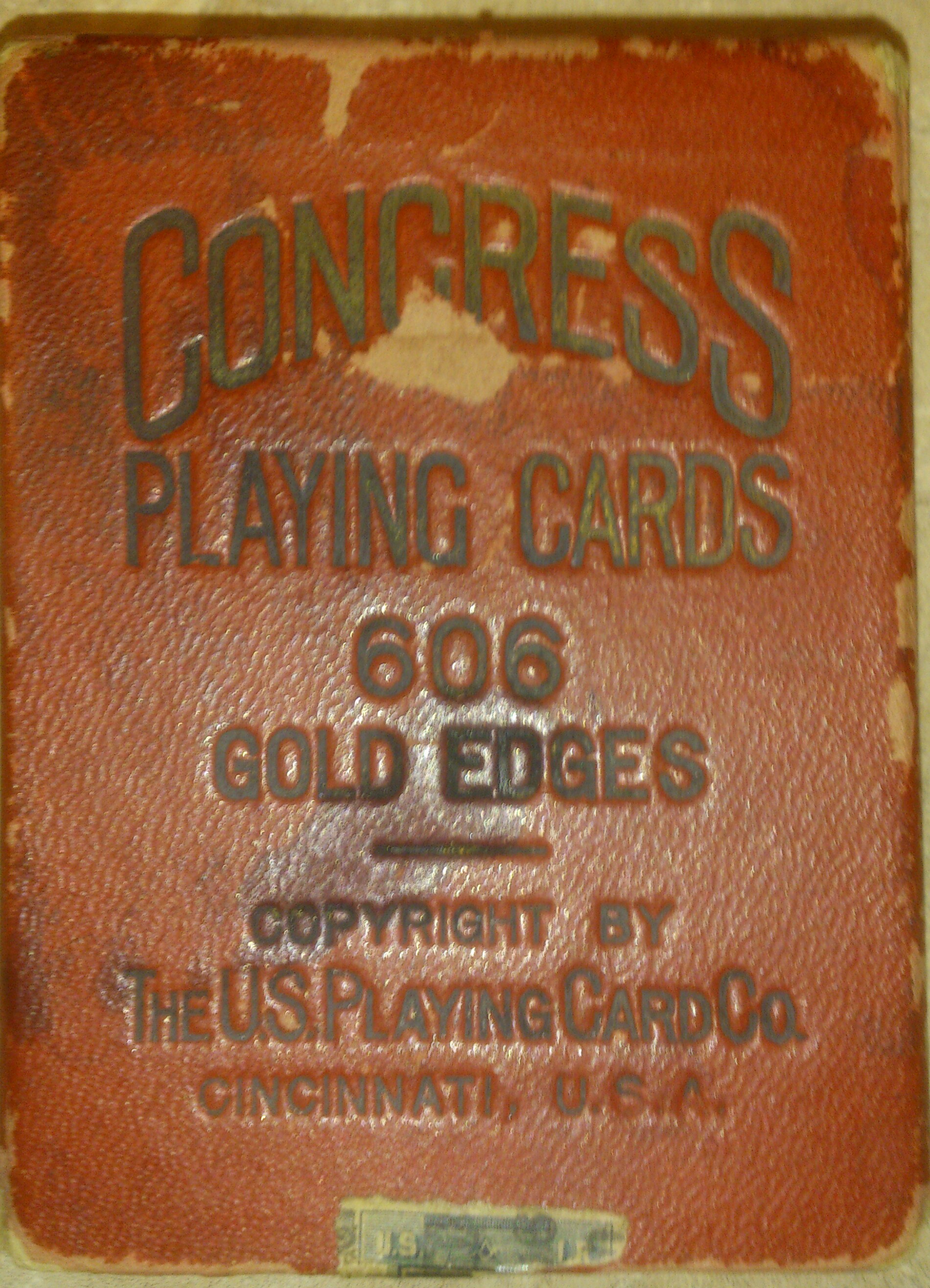 Congress 606 Captian Kidd playing cards. Made by the US Playing Card company. Has a 2 cent tax stamp w/ 1894 date. Missing 1 joker. Cards have gold edges and are in excellent condition.