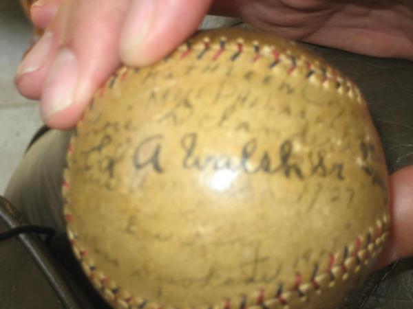 This baseball was my Dad's "Christmas tip" from the customers on his paper route. In addition to the Ed Walsh and Connie Mack signatures the neighbors signed it as well. JRG was a paperboy in East Hampton Connecticut.