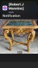 have metal in-laid markings around each item with a small pictures at the center of each area (top & below side of the mirror and the front side of the table; top of the table is made of marble